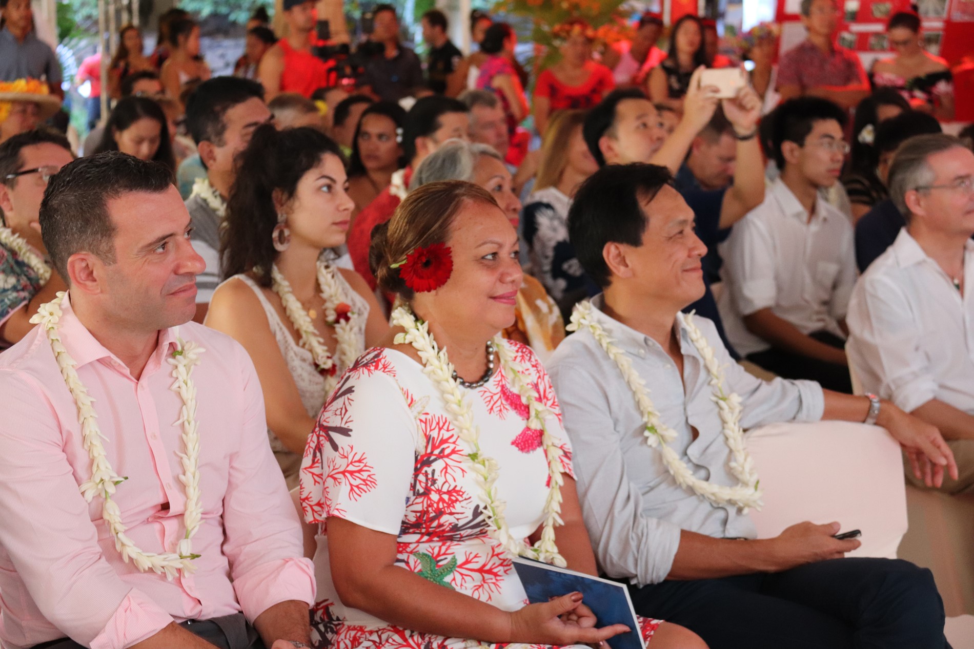 Cette cérémonie d’ouverture s’est tenue en présence de plusieurs autres membres du gouvernement de la Polynésie française, du consul de la république populaire de Chine, M. Shen Zhiliang, du président du Conseil économique, social, environnemental et culturel, M. Kelly Asin-Moux, du chef du bureau de la Commission européenne pour les pays et territoires d’outre-mer du Pacifique, M. Tomas Mateo-Goyet, du directeur général de la Pacific Tourism Association, Chris Cocker, et de Mme Temarama TETUA, marraine de l’évènement. Vaimalama Chaves, Miss France 2019 était également présente à l’ouverture de ce forum.
