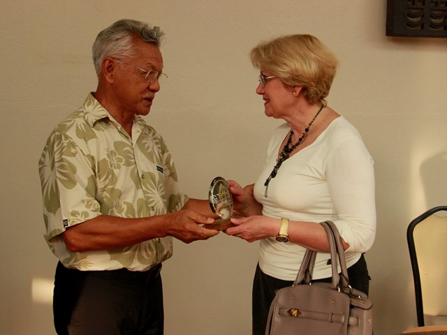Mercredi 6 juin 2018, le président de l'assemblée a reçu dans son bureau place Tarahoi, Mme Marie-Anne Poussin-Delmas, présidente de l’Institut d’Emission des départements d’Outre-Mer (IEDOM) et directrice générale de l’Institut d’Emission d’Outre-Mer (IEOM). Elle était accompagnée de M. Philippe La Cognata, directeur de l’IEOM, et de M. Claude Periou, directeur de l’IEOM en Polynésie française