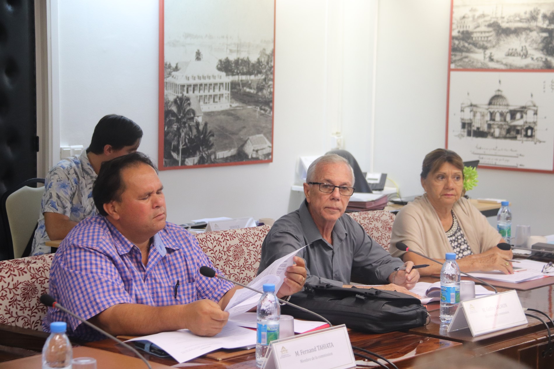 Ce dossier a été défendu par Mme Audrey MERCIER, conseillère technique auprès du ministre de l’économie verte et du domaine, M. Timi WONG YUT, directeur de cabinet du ministre de l’équipement et des transports terrestres, Mme Brenda CIER-FOC, ingénieur en charge des ressources minières à la Direction des affaires foncières (DAF), M. Franck GIANDOLINI, chef du groupement d’étude et de gestion du domaine public à la Direction de l’équipement (DEQ), M. Laurent MATIJASCIC, chef du département juridique de la fiscalité à la Direction des impôts et des contributions publiques (DICP), Mme Vanina CHEUNG, chef du bureau de la législation à la DICP et M. André BROTHERS, rédacteur des douanes au pôle « Affaires économiques et fiscales » de la Direction régionale des douanes de Polynésie française.