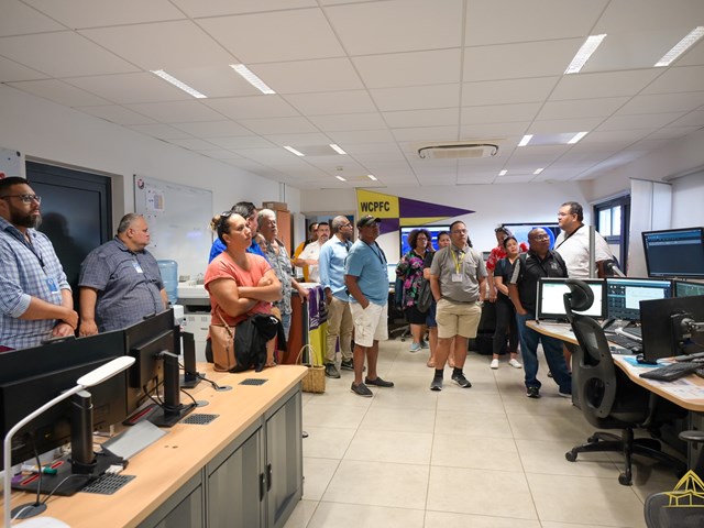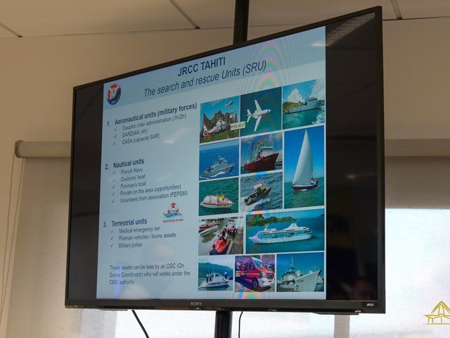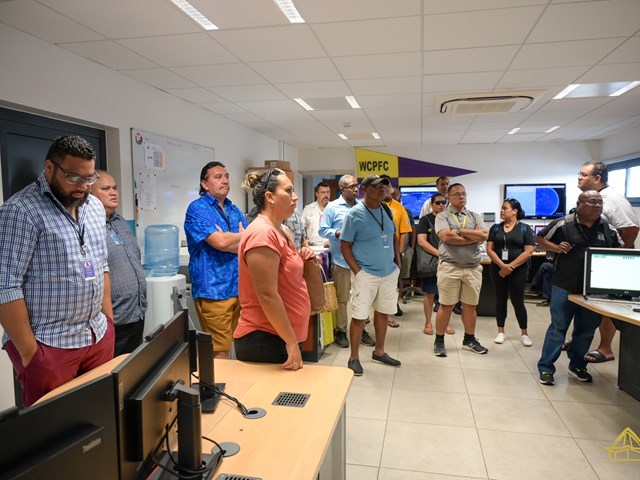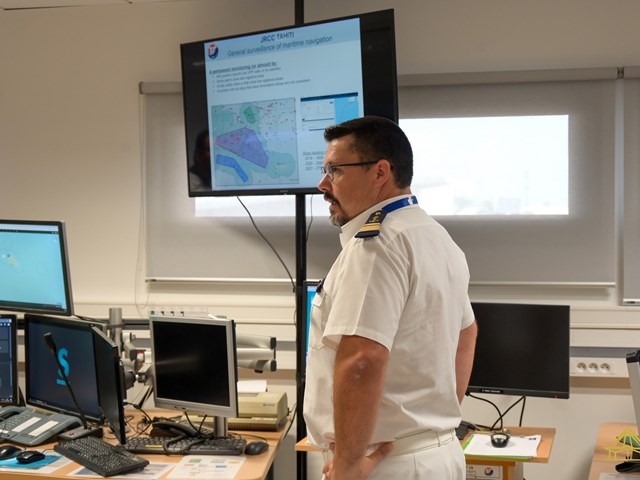 Accueillis par M. Alex GENICOT, directeur du JRCC Tahiti et référent surveillance des pêches, les délégations du Pacifique ont pu prendre connaissance du rôle et des missions de cette structure consistant en la recherche et le sauvetage en mer, la surveillance générale de la navigation maritime, la surveillance des pêches, la surveillance des pollutions, la diffusion de renseignement de sécurité maritime et la Sureté maritime.