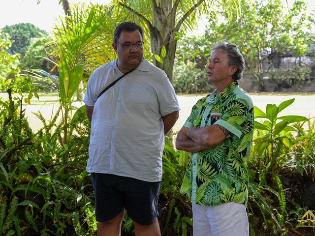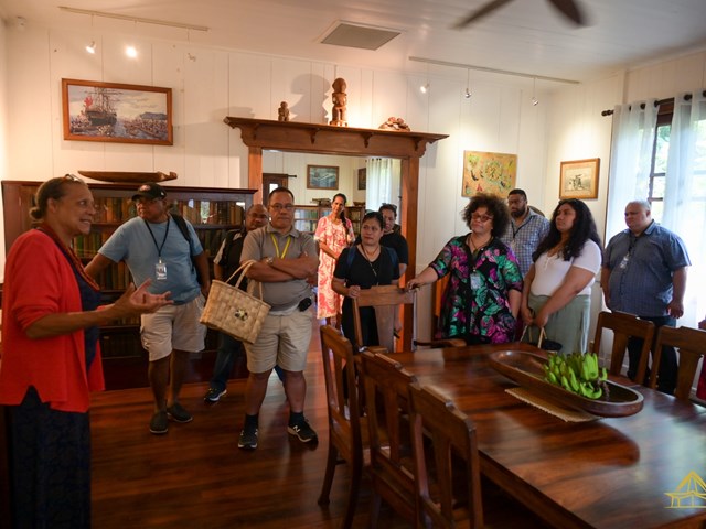 Les élus ont ensuite profité de ce point d'arrêt à Arue pour visiter deux sites emblématiques de la commune, le Bain du Roi et le musée James Norman Hall, en présence de Mme Teura IRITI, maire de la commune et de M. Jacky BRYANT, adjoint au maire en charge de la culture.