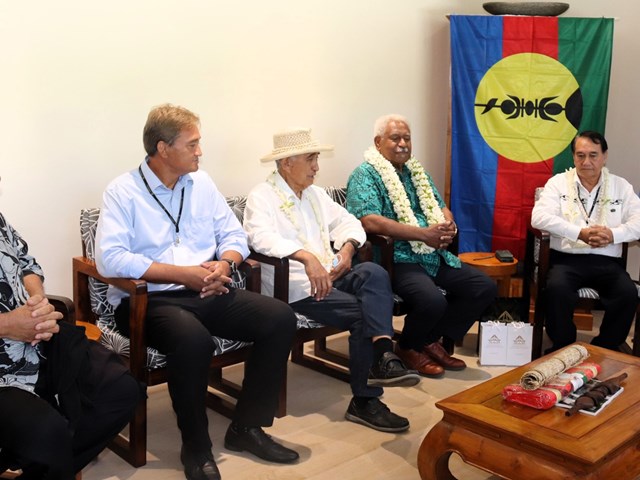 Le président Antony GEROS a accueilli à l’assemblée de la Polynésie française ce lundi 29 janvier 2024, une délégation du Congrès de Nouvelle-Calédonie conduite par son président M. Roch WAMYTAN et composée de MM. Milakulo TUKUMULI et Pierre-Chanel TUTUGORO, respectivement Président de la commission permanente du Congrès et Président du groupe UC-FLNKS et Nationalistes, accompagnés de leurs collaborateurs.