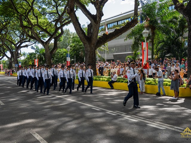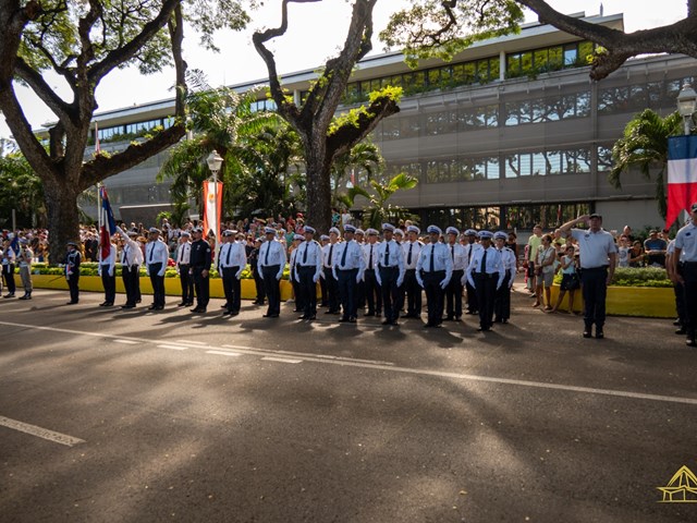 La cérémonie a débuté par la décoration de huit récipiendaires avant de laisser place au traditionnel défilé du 14 juillet où environ 500 agents des troupes militaires du Pays ont défilé tout le long de l'avenue Pouvana’a a Oopa.