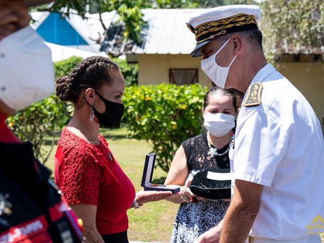 Cette cérémonie, présidée par M. Dominique SORAIN, Haut-commissaire de la République en Polynésie française, a été l’occasion de rendre hommage aux sapeurs-pompiers et plus largement à toutes les personnes qui œuvrent au service de la sécurité des citoyens. Le Haut-commissaire a également remis à titre posthume la médaille d’honneur des sapeurs-pompiers, échelon or et rosette, pour services exceptionnels, à la conjointe de M. Naili MATAITAUA, décédé en service en janvier 2021.