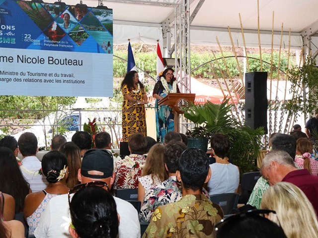 La présidente de la commission de la santé, du travail et de l’emploi, accompagnée de plusieurs représentants à l’assemblée, a participé ce matin, à la Présidence, aux côté de la ministre du tourisme et du travail, Madame Nicole BOUTEAU, et de nombreuses personnalités du monde touristique polynésien, à l’ouverture du 4ème du Forum des formations et métiers du tourisme.