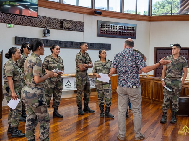 Ils étaient 9 stagiaires du RSMA, âgés de 19 à 25 ans, originaires des îles sous-le-vent, à visiter l’assemblée de la Polynésie française, ce mercredi 22 juin 2022. Actuellement en formation à la CCISM, cette sortie était l’occasion pour ces jeunes de connaître le rôle et le fonctionnement de l'institution.