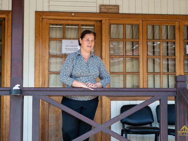 Le parcours a donc commencé par la découverte du hall René LEBOUCHER et des différents panneaux d’information qui s’y trouvent. La délégation a ensuite découvert l’hémicycle de l’assemblée, dans lequel ils ont pu admirer les sculptures qui ornent les murs de la salle. Par la suite, ils ont eu l’occasion de rencontrer Mme Tepuaraurii TERIITAHI, présidente du groupe Tapura huiraatira à l’assemblée, qui les a encouragé à poursuivre leur formation.