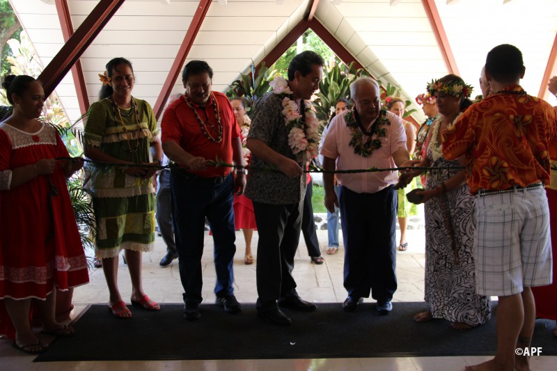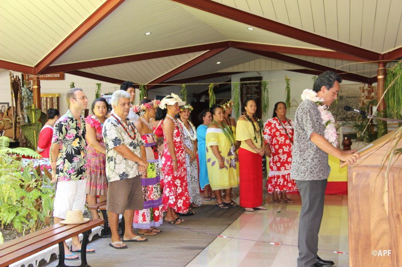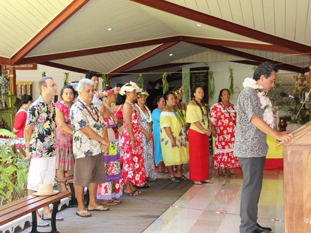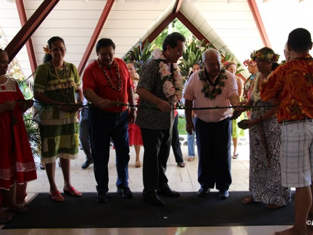 Après le mave mai d’accueil, les personnalités présentes ont procédé à la coupure du ruban d’inauguration. Les exposants de bijoux, créations textiles, tatouages et sculptures, ont ensuite entonné l’hymne marquisien.