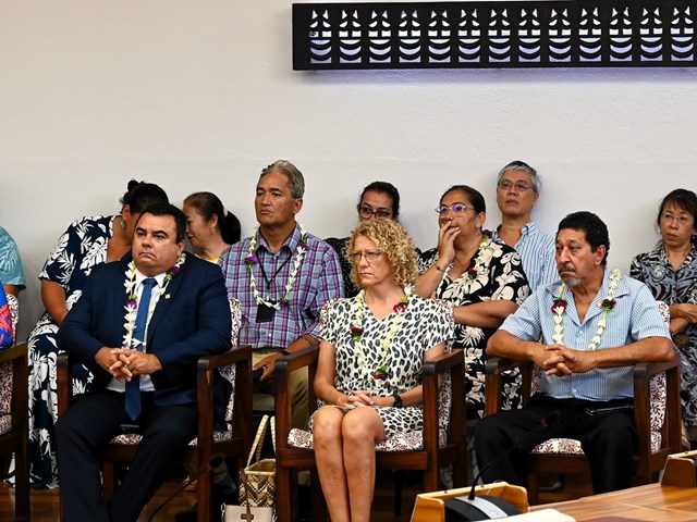 À cette occasion, plusieurs personnalités étaient présentes dans l’hémicycle, notamment le Président de la Polynésie française et les membres de son gouvernement, les parlementaires nationaux, le représentant du commandant supérieur des forces armées en Polynésie française, la présidente du conseil économique, social, environnemental et culturel, les chefs de service de l’assemblée, les représentant du monde patronal et des syndicats de salariés et les représentants des confessions religieuses.