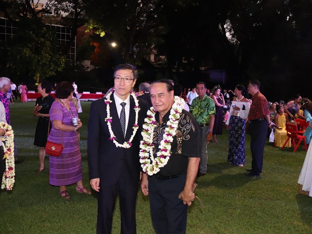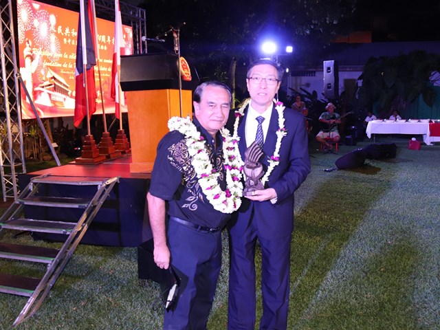 M. Antony GEROS, président de l’assemblée de la Polynésie française a participé hier, mardi 19 septembre 2023, à la cérémonie du 74ème anniversaire de la République populaire de Chine, organisée dans les jardins de la Reine Pomare IV à l’initiative de M. Lixiao TIAN, consul de Chine. Étaient également présents une vingtaine de représentants pour célébrer la fête nationale chinoise.
