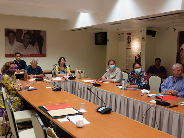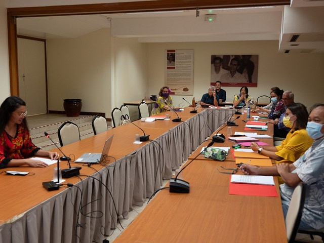 Ces jeunes francophones ont d’abord télétravaillé entre le 17 mai et le 19 août 2021 et ont tenu 6 visioconférences, afin de mener une réflexion par groupe de travail sur les trois thèmes : Art, enseignement et mémoire ; Génocides et femmes et Décolonisation et européano-centrisme.