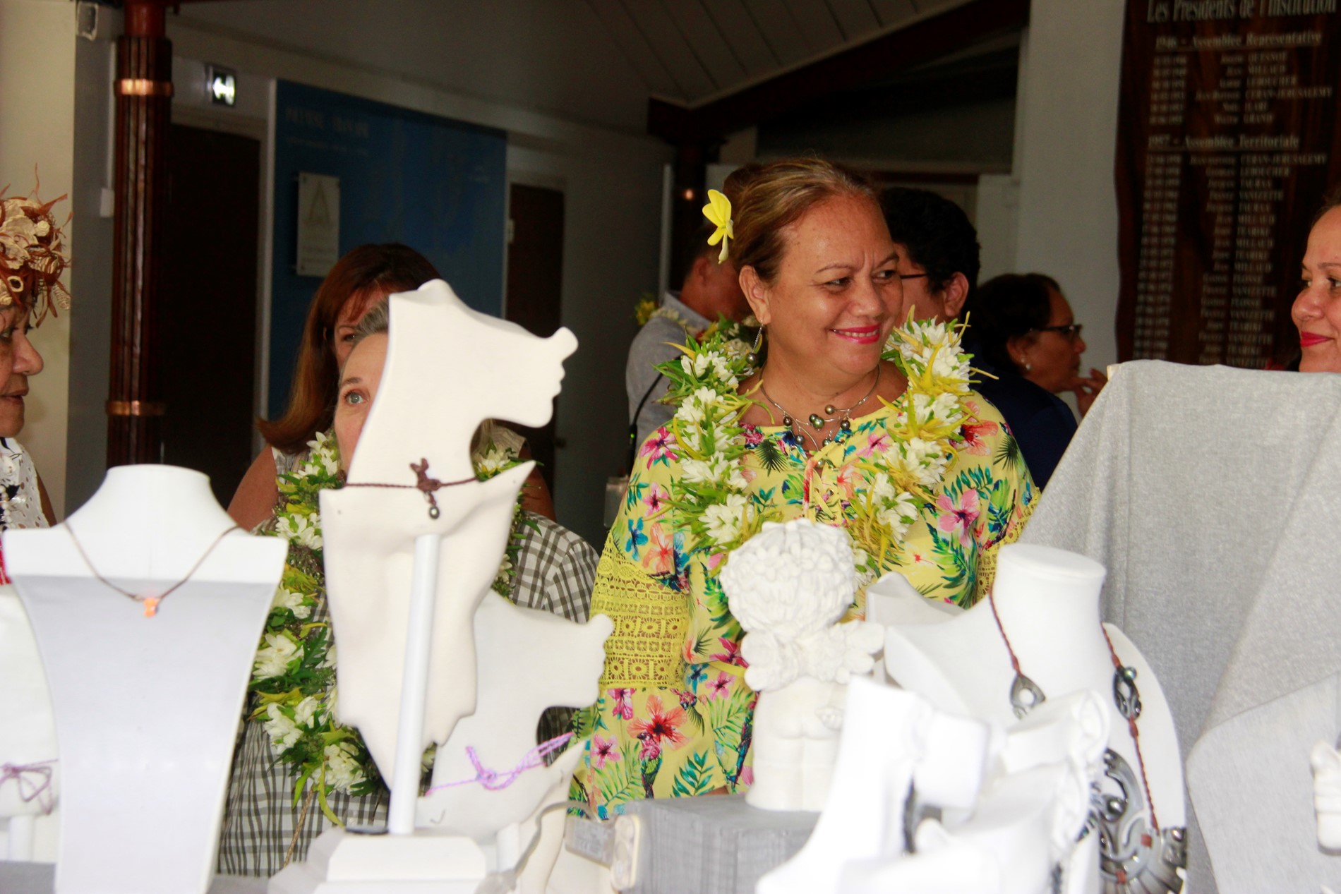 Mardi 22 mai 2018, la première vice-présidente de la 3e institution, Mme Sylvana Puhetini, nouvellement désignée, représentant M. Gaston Tong Sang, président de l’assemblée de la Polynésie française, accompagnée de la présidente de l’association « Artisanat d’Art », Mme Fauura Bouteau, la ministre du tourisme sortante, Mme Nicole Bouteau et des représentants du service de l’artisanat, ont inauguré le salon d’artisanat d’art dans le hall de l’assemblée.