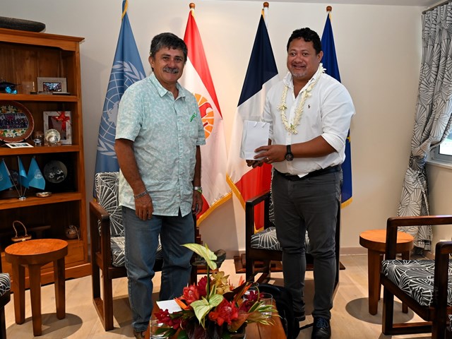 Ce jeudi 12 juin 2025, M. Ueva HAMBLIN, premier vice-président de l’Assemblée de la Polynésie française, représentant le président de l’institution, M. Antony GEROS, a reçu M. Tamaso POOI, directeur général de Vergnet Pacific.
