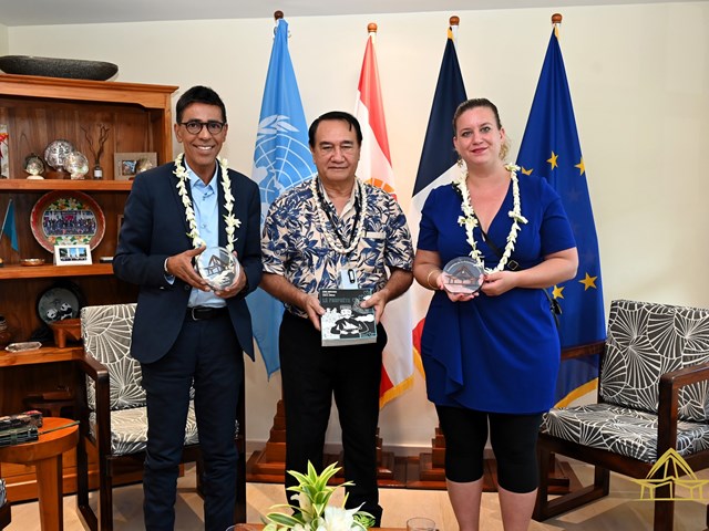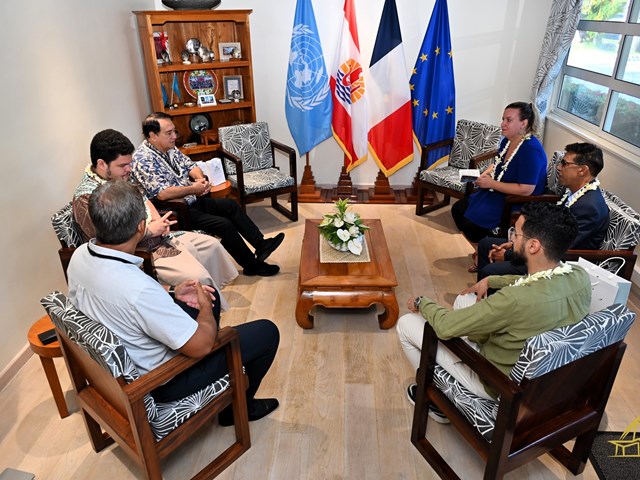 Ce lundi 27 mai, l'assemblée de la Polynésie française a accueilli une délégation de La France Insoumise (LFI) dans le cadre d'une rencontre protocolaire. Le Président de l'assemblée, M. Antony GEROS, accompagné de M. LE GAYIC, a reçu Mme Mathilde PANOT, députée et présidente du groupe LFI, ainsi que M. Younous OMARJEE, député européen et président de la commission du développement régional au Parlement européen. La délégation comprenait également M. Helmi M'RABET, directeur de cabinet de Mme PANOT.