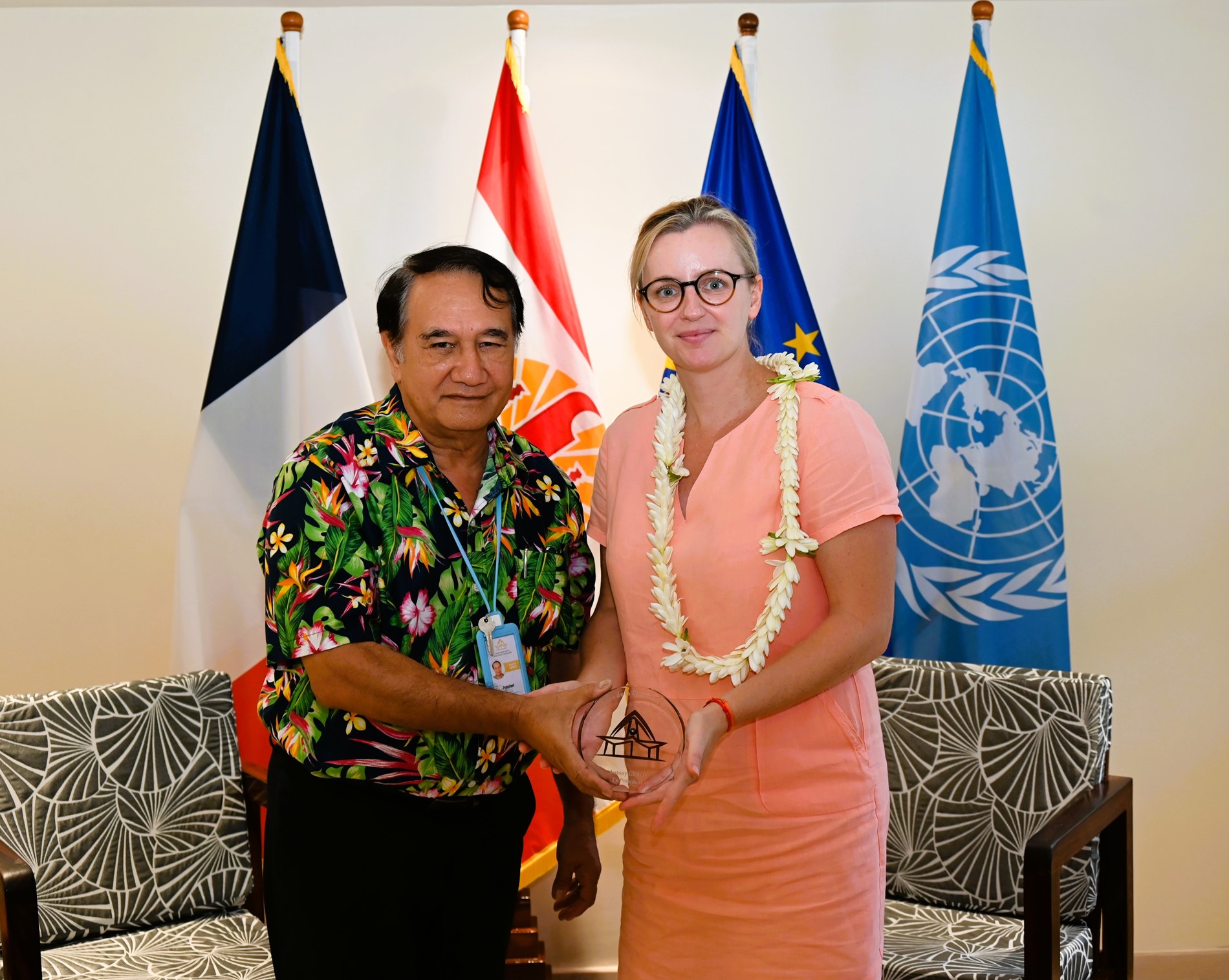 Le jeudi 9 octobre 2025, M. Antony GEROS, Président de l’Assemblée de la Polynésie française, a reçu Mme Chloé DEMEULENAERE, directrice du cabinet du Haut-commissaire de la République en Polynésie française, dans le cadre d’une visite protocolaire.