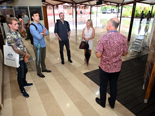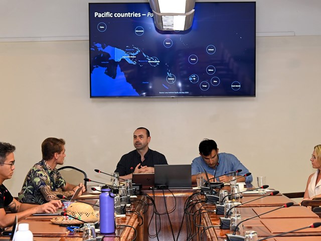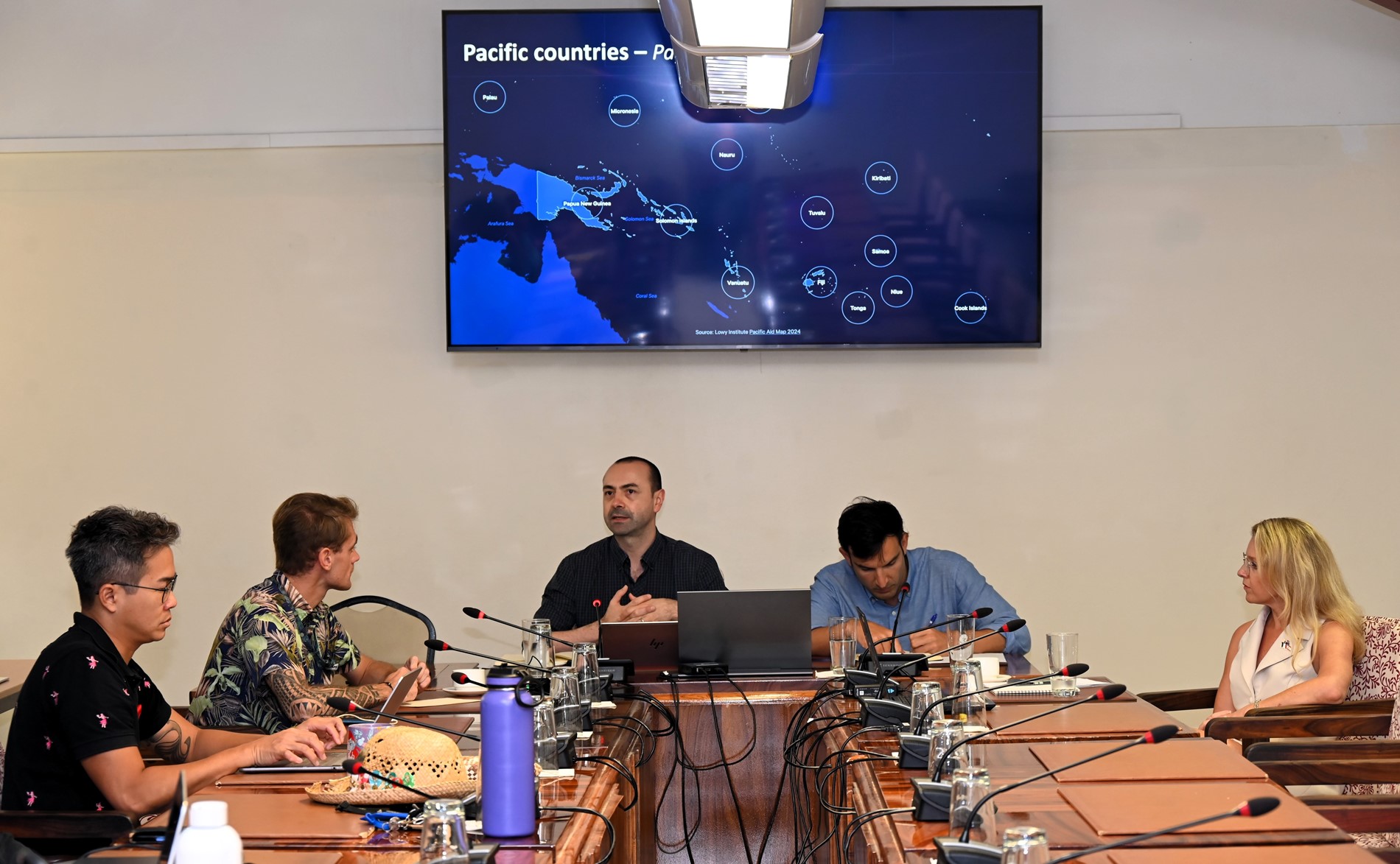 La délégation a, dans un premier temps, été accueillie pour une visite de l’Assemblée de la Polynésie française, avant d’être reçue en entretien protocolaire par M. Bruno FLORES, 2ᵉ vice-président de l’Assemblée, représentant le président. Les membres du Lowy Institute ont ensuite échangé avec les élus du groupe Tavini Huiraatira sur les grandes dynamiques qui traversent aujourd’hui la région : coopération régionale, stabilité géopolitique, enjeux de développement, gouvernance, connectivité et impacts des stratégies indo-pacifiques.