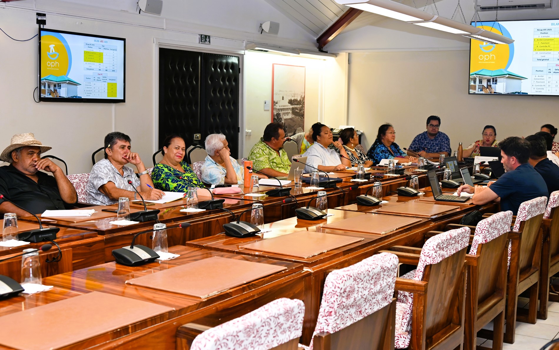 Parmi les intervenants figuraient des représentants du ministère du foncier et du logement, en charge de l’aménagement, ainsi que des membres de l'Office Polynésien de l'Habitat (OPH), qui ont présenté un bilan de la mise en œuvre des dispositifs d’aide au logement FARE et AAHI sur la période 2023-2025.