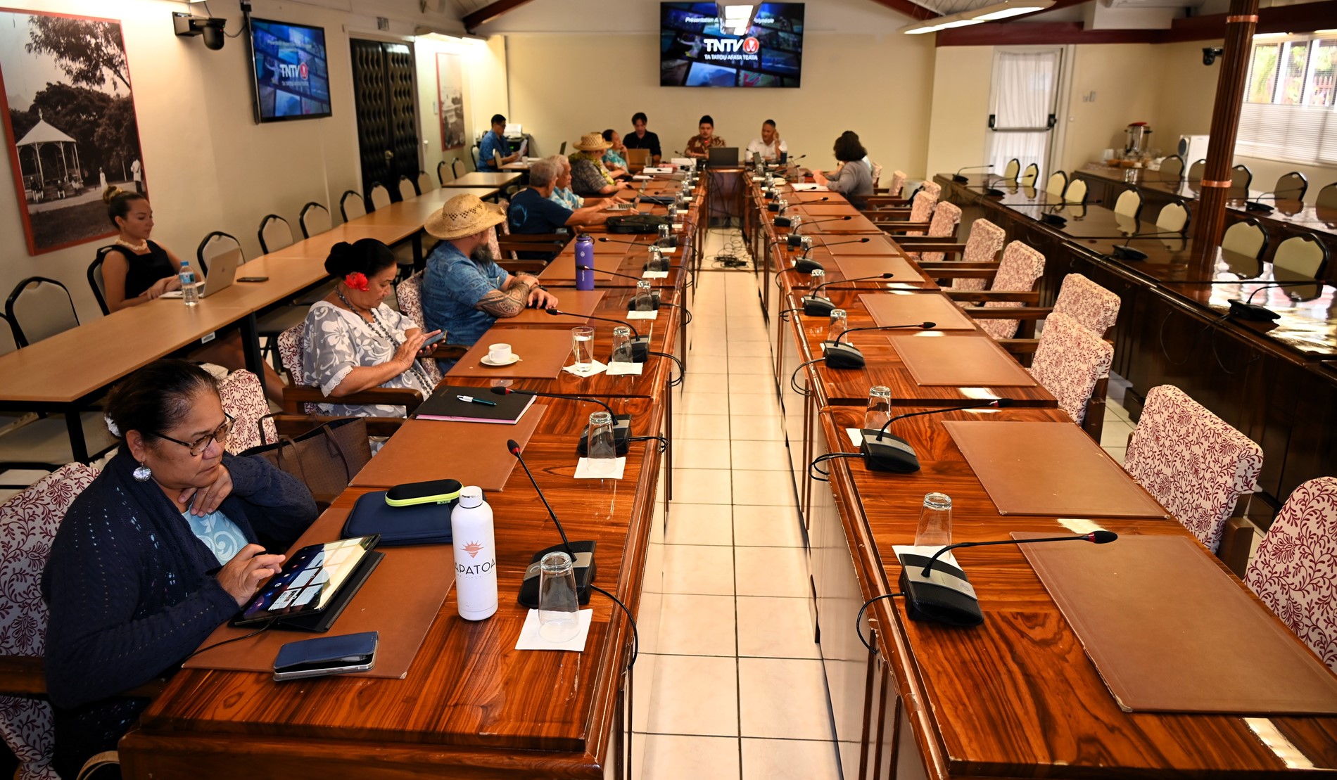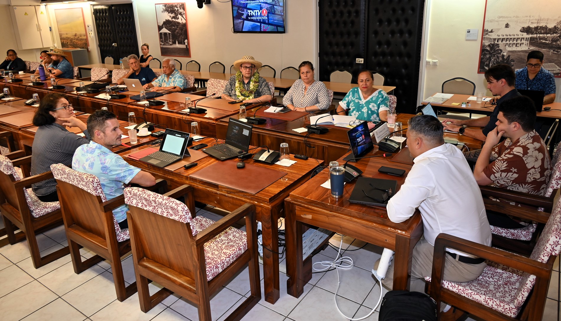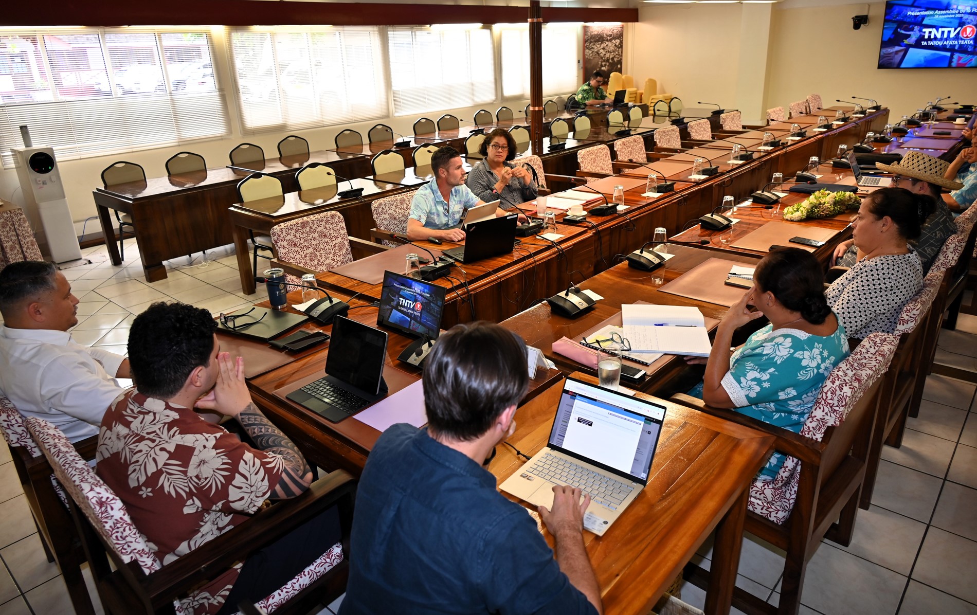 La commission de l’économie, des finances et du budget, présidée par M. Tematai LE GAYIC, s’est réunie le vendredi 28 novembre 2025 pour une réunion consacrée à la situation actuelle de la chaîne publique Tahiti Nui Télévision (TNTV) et aux perspectives de développement du service public audiovisuel. Ont participé aux travaux les membres de la commission ainsi que plusieurs représentants non membres. La chaîne était représentée par Mme Mateata MAAMAATUAIAHUTAPU, directrice d’antenne, et M. Mickaël CHARLET, directeur général par intérim.