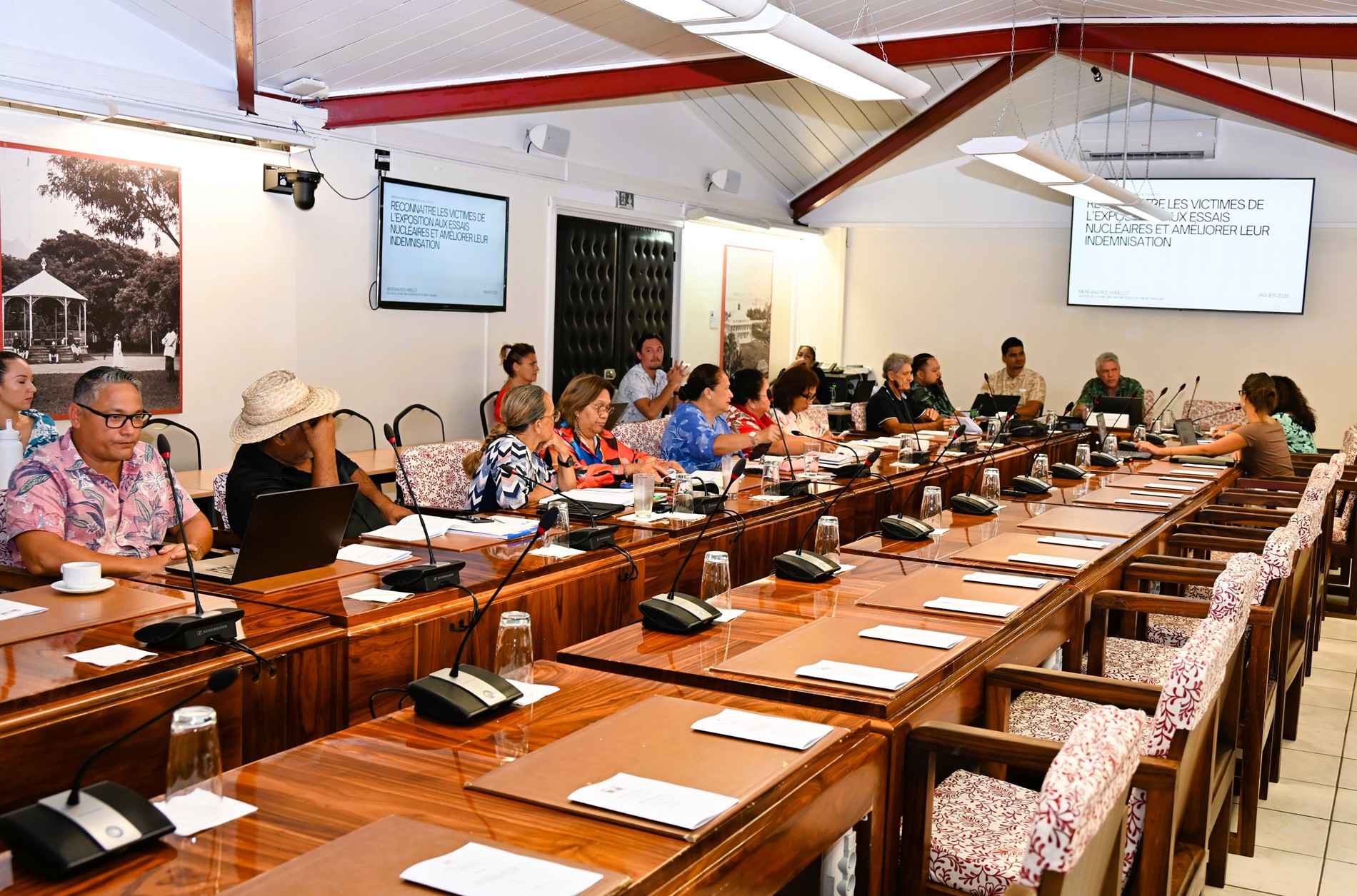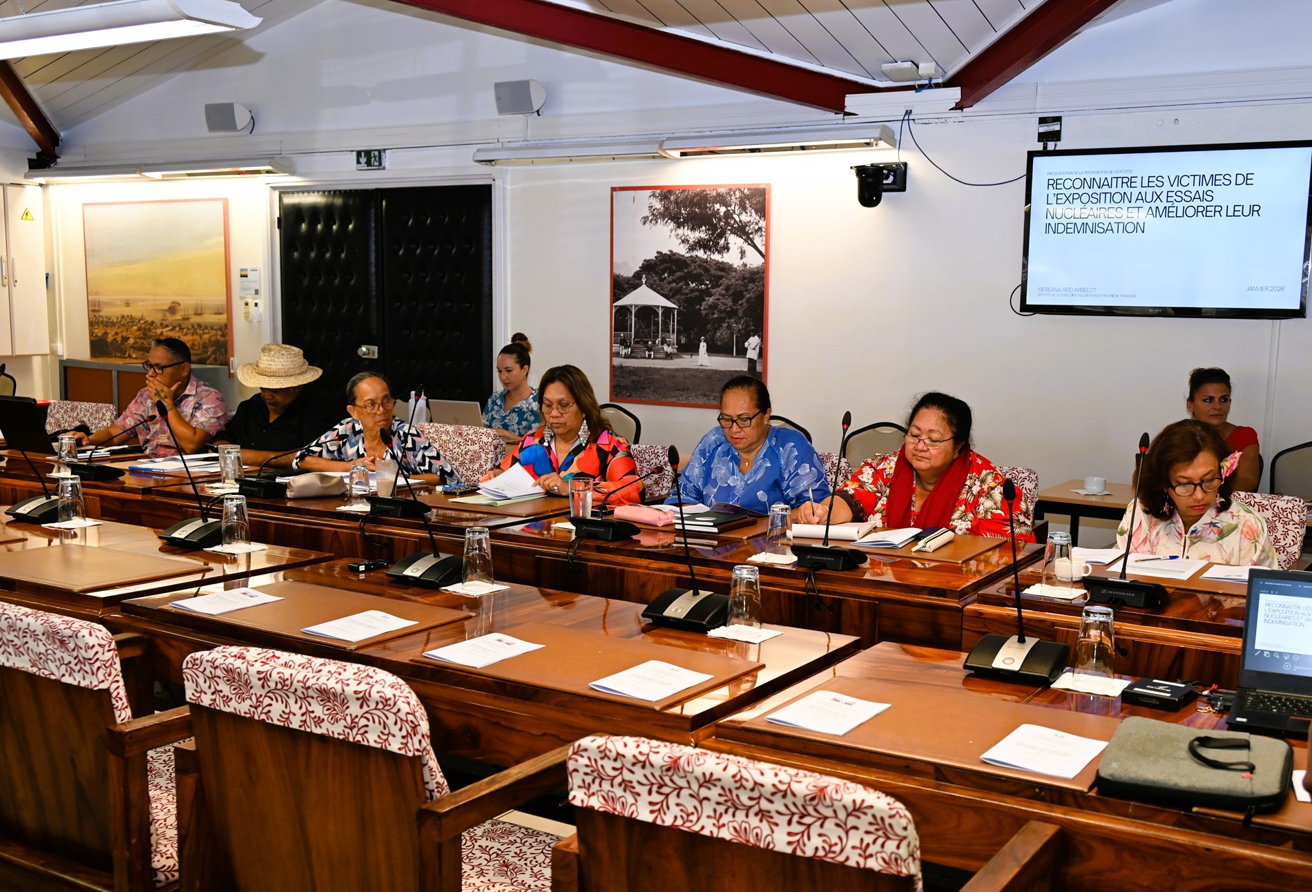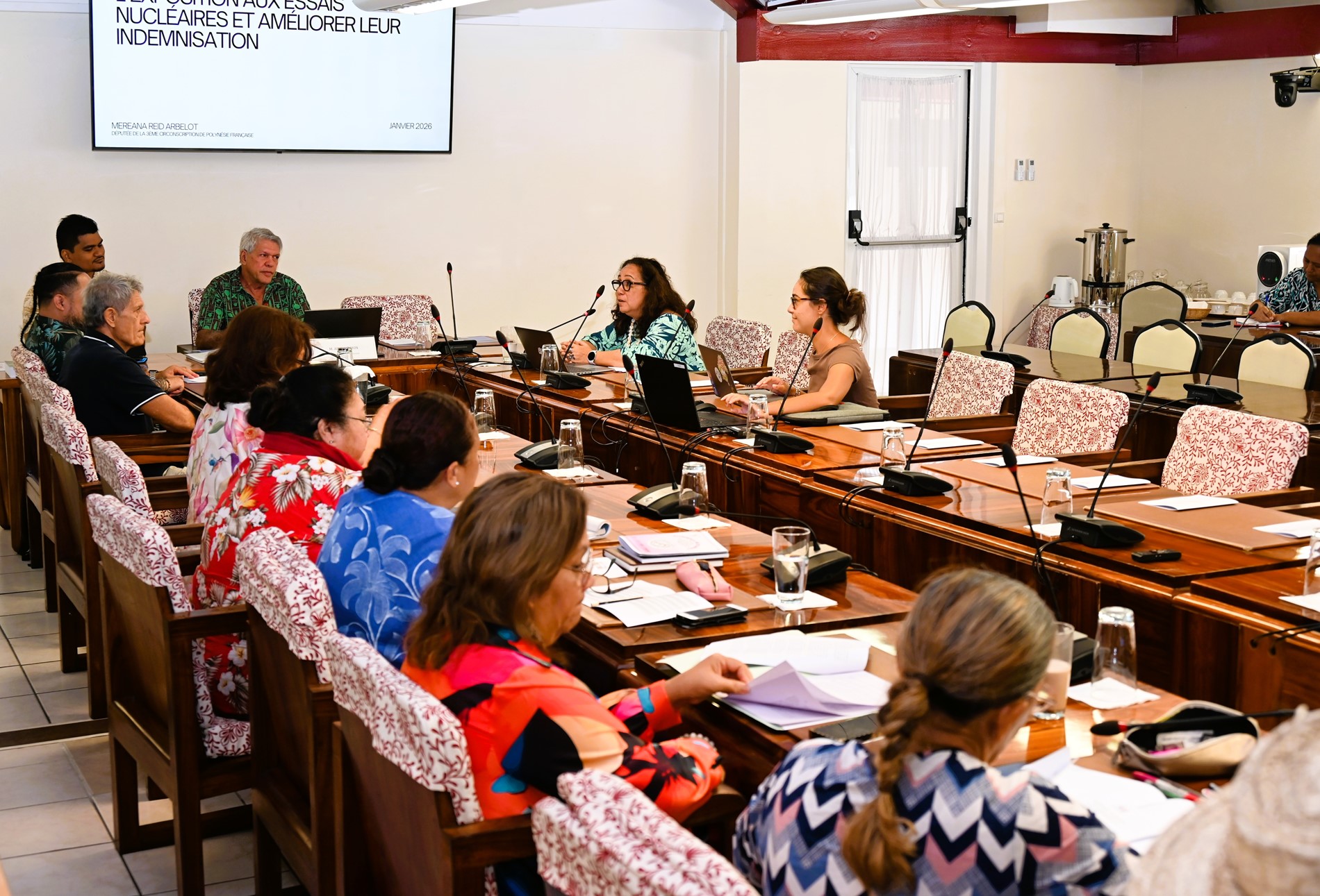 La commission des institutions, des affaires internationales et des relations avec les communes de l’Assemblée de la Polynésie française, présidée par M. Allen SALMON, a tenu, le jeudi 8 janvier 2026, une réunion d’information consacrée à la présentation de la proposition de loi visant à reconnaître les victimes de l’exposition aux essais nucléaires français et à améliorer leur indemnisation.