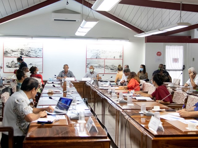 Les élus ont ensuite suivi une présentation sur les propositions du vice-président, ministre de l’agriculture, de l’économie bleue et du domaine, M. Tearii ALPHA, concernant la gestion des mouillages en Polynésie française. Le vice-président était accompagné pour l’occasion de M. Steeve LEFOC, directeur de cabinet, Mme Audrey MERCIER, conseillère technique, M. Alain MOYRAND, consultant juridique, Mme Vanina FARDIN, directrice adjointe de la direction des affaires foncières (DAF) et Mme Alexandra GRAND, représentante de la direction des ressources marines (DRM).