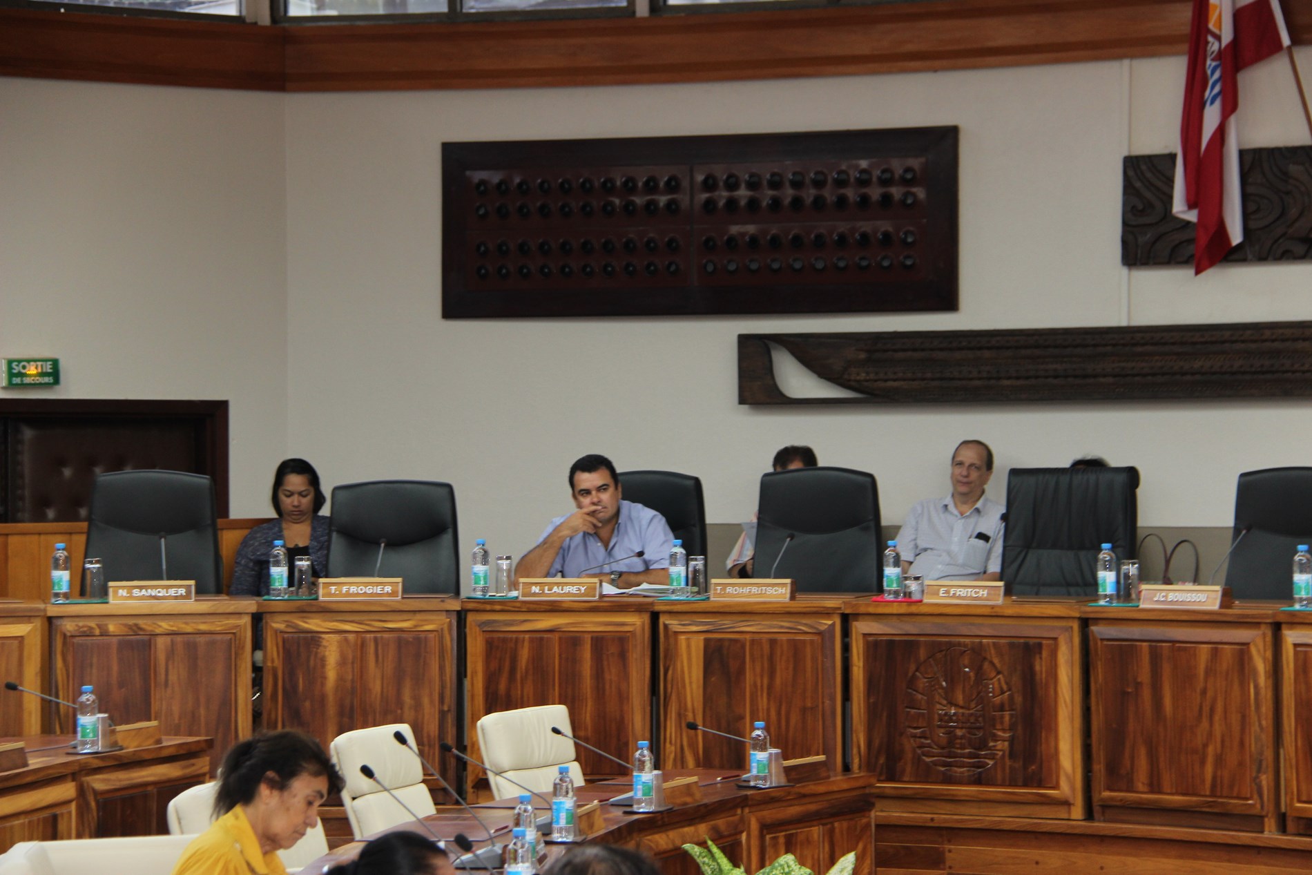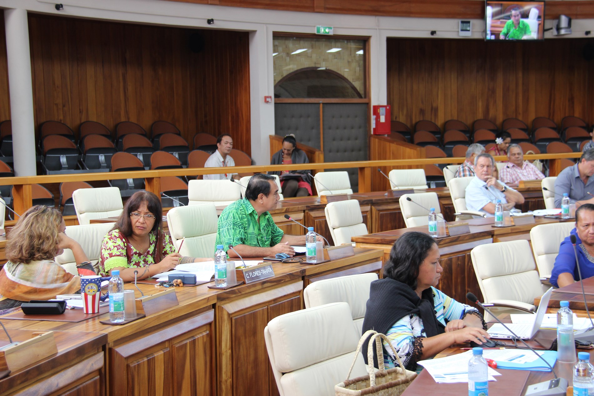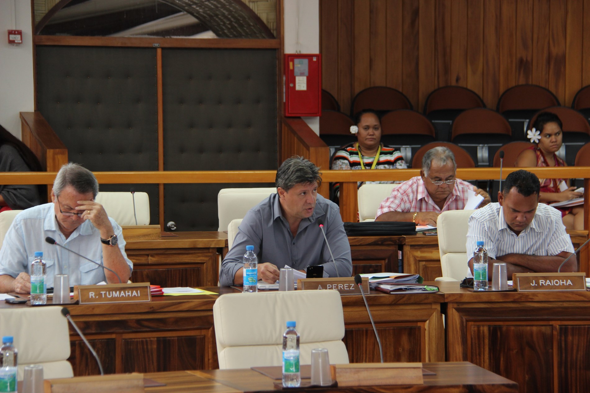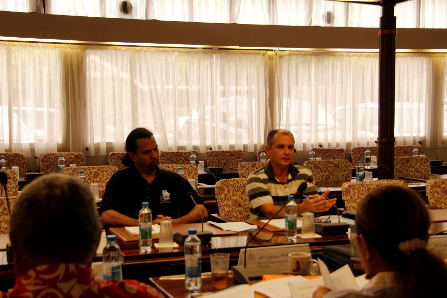 Étaient présents pour répondre aux questions des élus : M. Torea THURET, directeur de la société d'économie mixte du port de pêche de Papeete (S3P), M. Alain SANTONI, chef du Bureau administratif et financier de la direction des ressources marines et minières (DRMM), Mme Louisette REID, responsable de la cellule constitution à la Direction des affaires foncières (DAF), Mme Katty TAURUA, agent de la cellule constitution à la DAF, Mme Taraina VOTA, chef du service du tourisme par intérim, Mme Nicole FAREATA-SANQUER, ministre de l'éducation et de l'enseignement supérieur, de la jeunesse et des sports, Mme Marie-Luce DOMINGOS, correspondante budgétaire ministérielle, Mme Terava MARITERAGI-DEFLESSELLE, comptable auprès du ministre des sports, Mme Cécile TIATIA, conseillère technique en charge des sports, Mme Mae LHOPITAL, directrice de la Direction de la jeunesse et des sports (DJS), M. Fanauatea GATIEN, responsable du Bureau de développement des activités physiques et sportives (APS) à la DJS, M. Kenji CALMES, agent du Bureau de développement des APS à la DJS, M. Eric TUAHINE, conseiller technique en charge de la jeunesse, M. Vetea VAN HOEFEN, agent du bureau de développement des activités de jeunesse, Mme Gwenola RIOUAL, directrice par intérim du Musée de Tahiti et des îles et Mme Joany HAPAITAHAA, responsable de la cellule subvention du Service de la culture et du patrimoine.