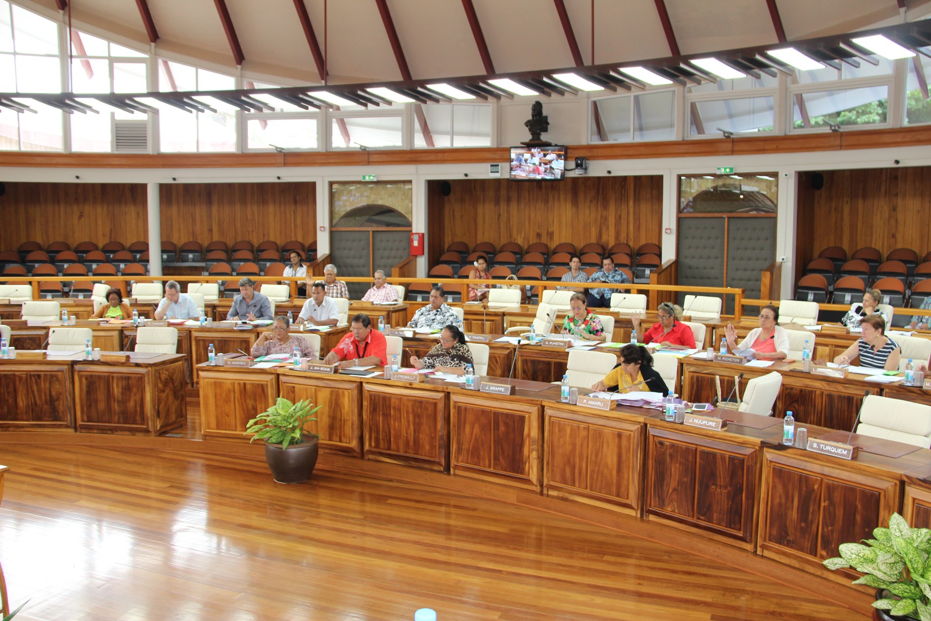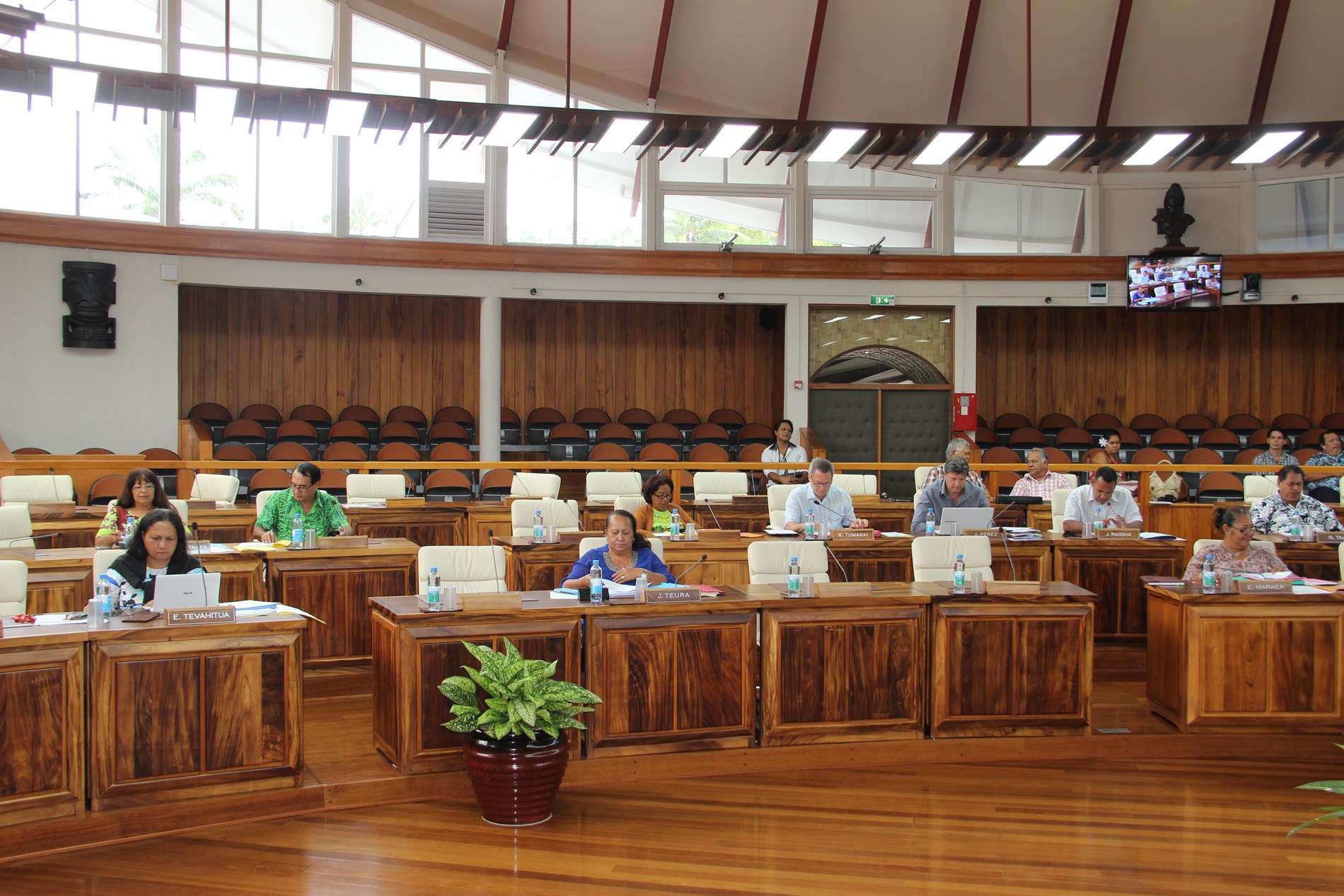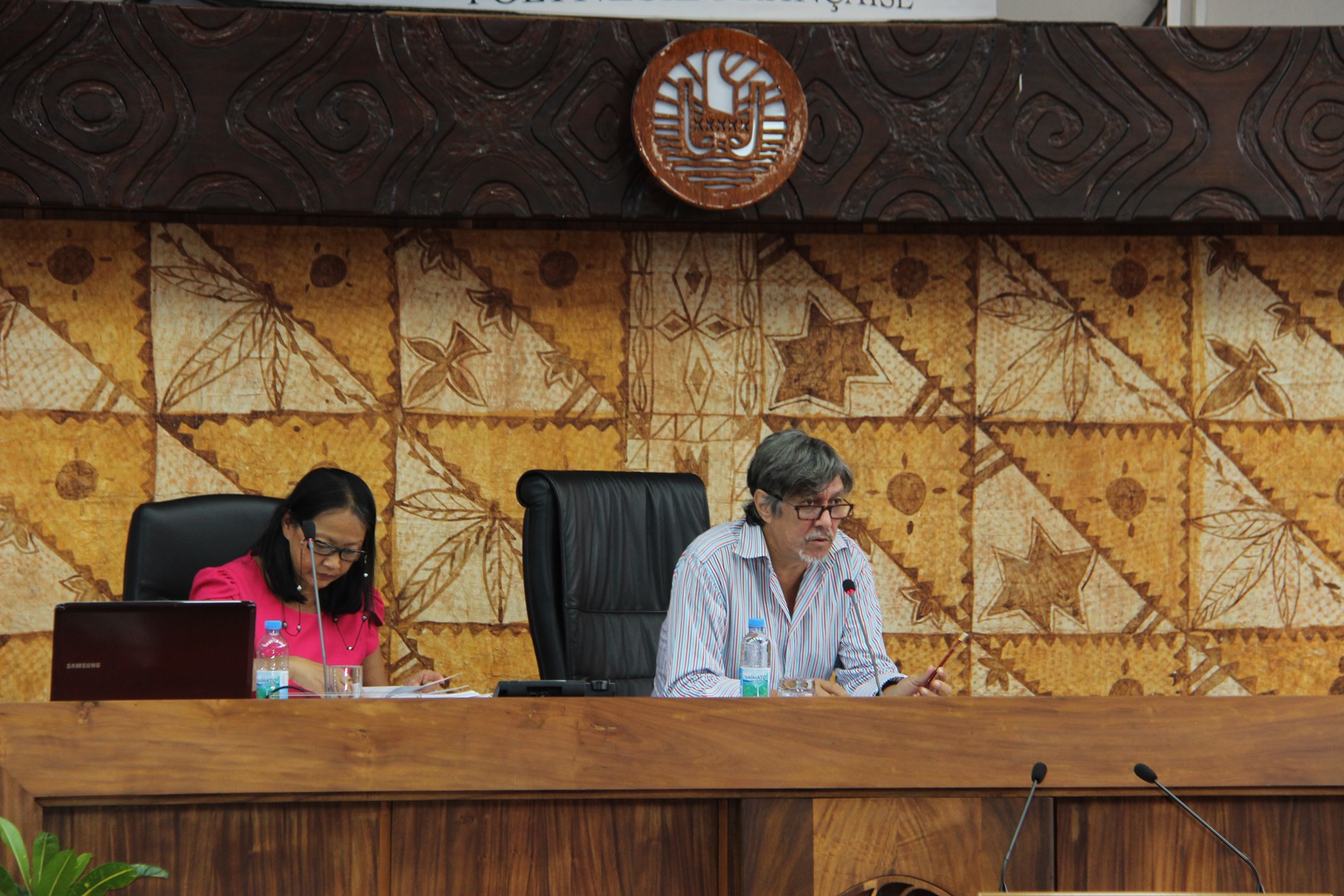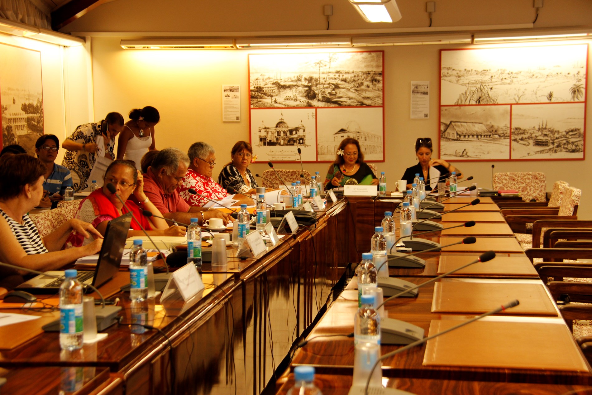 Étaient présents pour répondre aux questions des élus : M. Torea THURET, directeur de la société d'économie mixte du port de pêche de Papeete (S3P), M. Alain SANTONI, chef du Bureau administratif et financier de la direction des ressources marines et minières (DRMM), Mme Louisette REID, responsable de la cellule constitution à la Direction des affaires foncières (DAF), Mme Katty TAURUA, agent de la cellule constitution à la DAF, Mme Taraina VOTA, chef du service du tourisme par intérim, Mme Nicole FAREATA-SANQUER, ministre de l'éducation et de l'enseignement supérieur, de la jeunesse et des sports, Mme Marie-Luce DOMINGOS, correspondante budgétaire ministérielle, Mme Terava MARITERAGI-DEFLESSELLE, comptable auprès du ministre des sports, Mme Cécile TIATIA, conseillère technique en charge des sports, Mme Mae LHOPITAL, directrice de la Direction de la jeunesse et des sports (DJS), M. Fanauatea GATIEN, responsable du Bureau de développement des activités physiques et sportives (APS) à la DJS, M. Kenji CALMES, agent du Bureau de développement des APS à la DJS, M. Eric TUAHINE, conseiller technique en charge de la jeunesse, M. Vetea VAN HOEFEN, agent du bureau de développement des activités de jeunesse, Mme Gwenola RIOUAL, directrice par intérim du Musée de Tahiti et des îles et Mme Joany HAPAITAHAA, responsable de la cellule subvention du Service de la culture et du patrimoine.