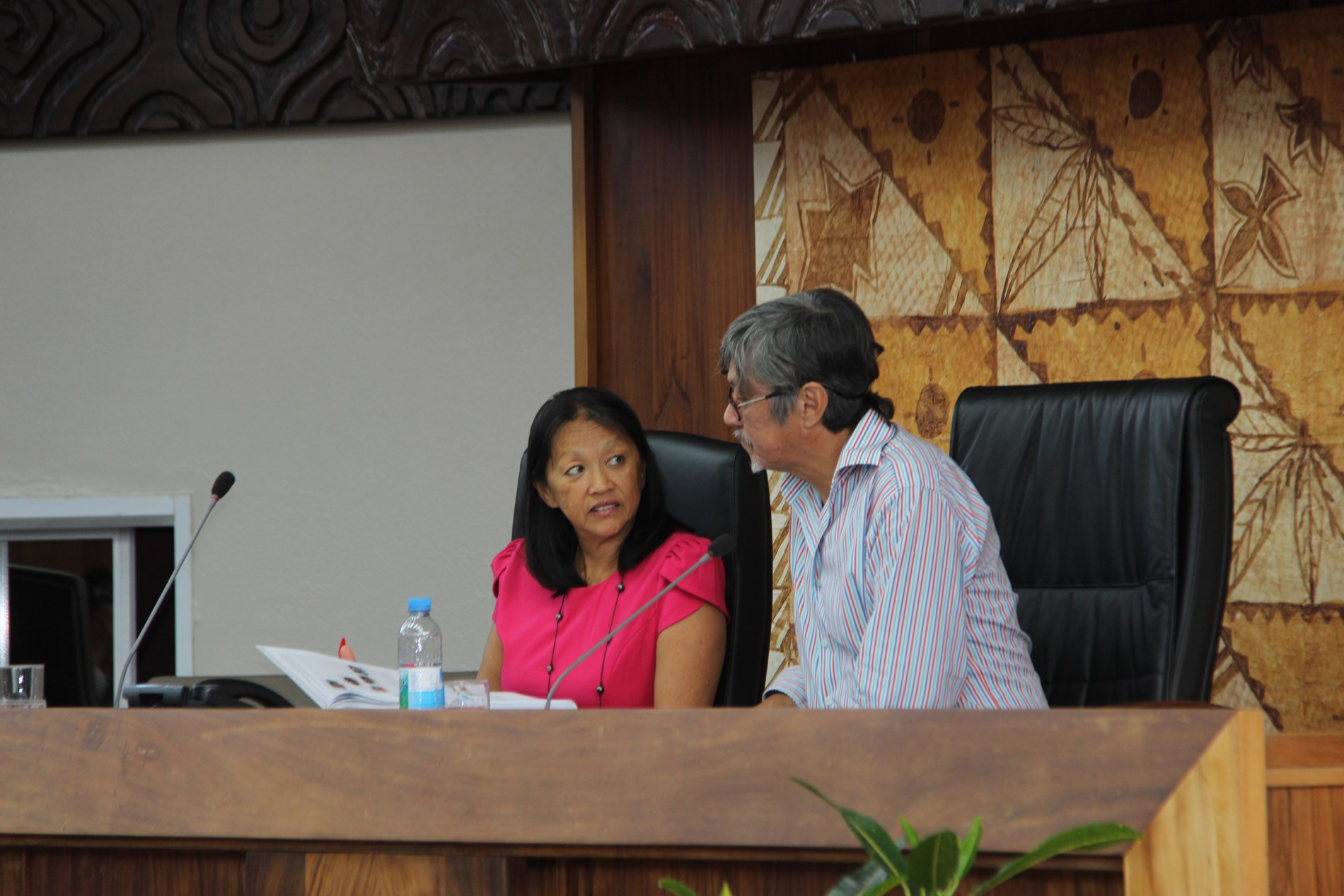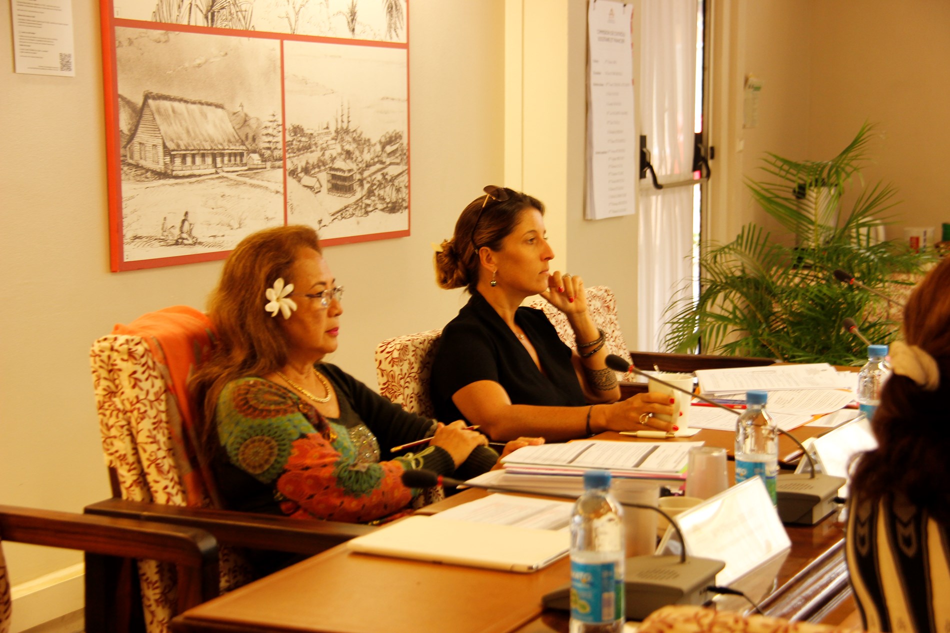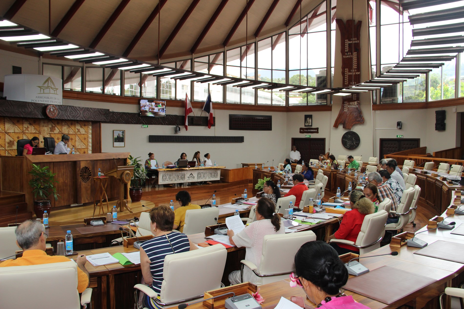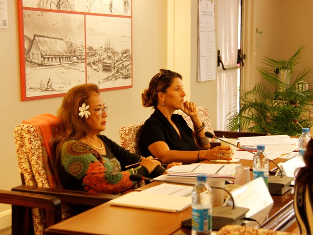 Étaient présents pour répondre aux questions des élus : M. Torea THURET, directeur de la société d'économie mixte du port de pêche de Papeete (S3P), M. Alain SANTONI, chef du Bureau administratif et financier de la direction des ressources marines et minières (DRMM), Mme Louisette REID, responsable de la cellule constitution à la Direction des affaires foncières (DAF), Mme Katty TAURUA, agent de la cellule constitution à la DAF, Mme Taraina VOTA, chef du service du tourisme par intérim, Mme Nicole FAREATA-SANQUER, ministre de l'éducation et de l'enseignement supérieur, de la jeunesse et des sports, Mme Marie-Luce DOMINGOS, correspondante budgétaire ministérielle, Mme Terava MARITERAGI-DEFLESSELLE, comptable auprès du ministre des sports, Mme Cécile TIATIA, conseillère technique en charge des sports, Mme Mae LHOPITAL, directrice de la Direction de la jeunesse et des sports (DJS), M. Fanauatea GATIEN, responsable du Bureau de développement des activités physiques et sportives (APS) à la DJS, M. Kenji CALMES, agent du Bureau de développement des APS à la DJS, M. Eric TUAHINE, conseiller technique en charge de la jeunesse, M. Vetea VAN HOEFEN, agent du bureau de développement des activités de jeunesse, Mme Gwenola RIOUAL, directrice par intérim du Musée de Tahiti et des îles et Mme Joany HAPAITAHAA, responsable de la cellule subvention du Service de la culture et du patrimoine.