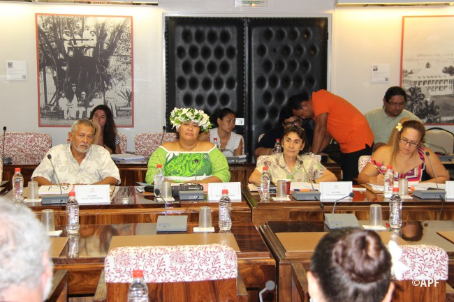 Etaient présents pour répondre aux interrogations des représentants à l’assemblée sur ces dossiers : Mme Augustine SHAN SEI FAN, conseillère technique en charge de l’agriculture auprès du ministre, Mme Merihere GUY, chargée de mission auprès du ministre, en charge des circonscriptions administratives et du foncier agricole, Mme Valéry ROY, adjointe du chef du département de la qualité alimentaire et de l’action vétérinaire au service du développement rural, M. Christian BUTIN, chef du départements forêts au service du développement rural et M. Rudolph PUTOA, chef du département phytosanitaire au service du développement rural.
