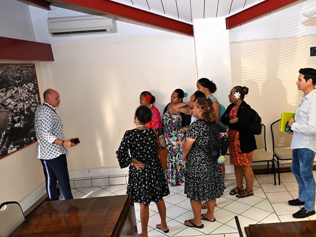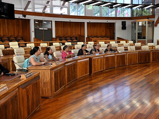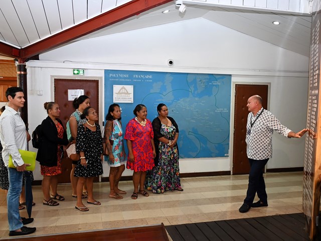 Les stagiaires ont également pu découvrir l’hémicycle Vetea BAMBRIDGE, où siègent les représentants pour débattre et voter les textes de loi. Les élèves y ont également découvert les éléments décoratifs représentant les cinq archipels de la Polynésie française.