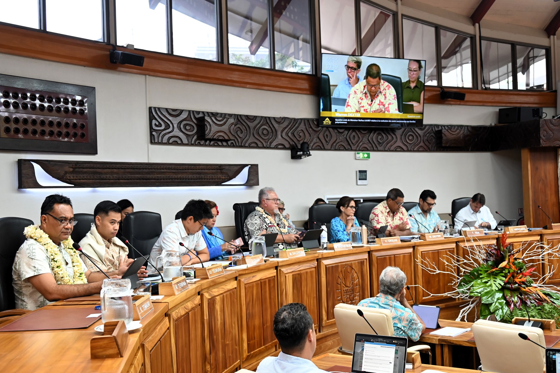 Puis les représentant ont abordé une proposition de résolution tendant à demander à l’État d’exercer sa compétence en matière de police de la circulation maritime pour encadrer la navigation dans la mer territoriale de la Polynésie française afin d ’assurer la protection des cétacés.
