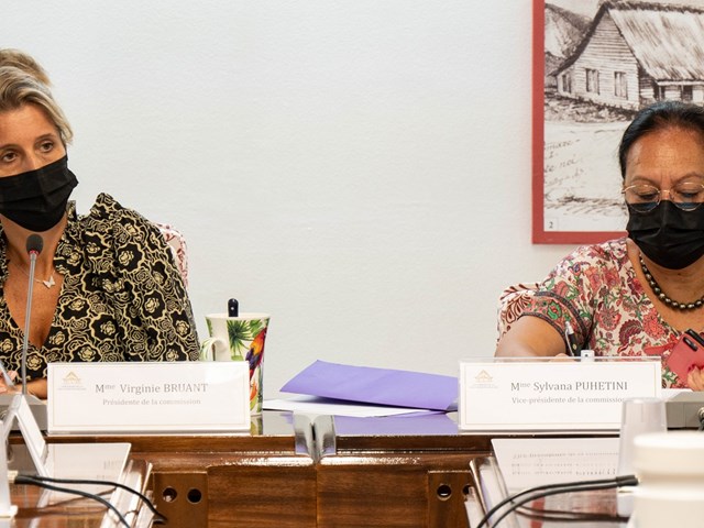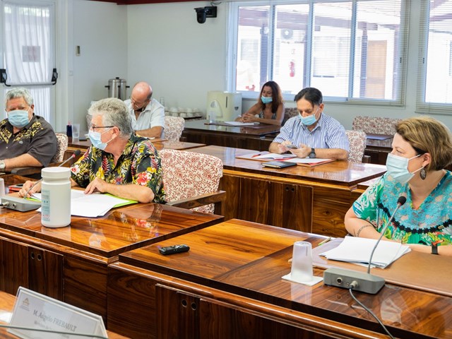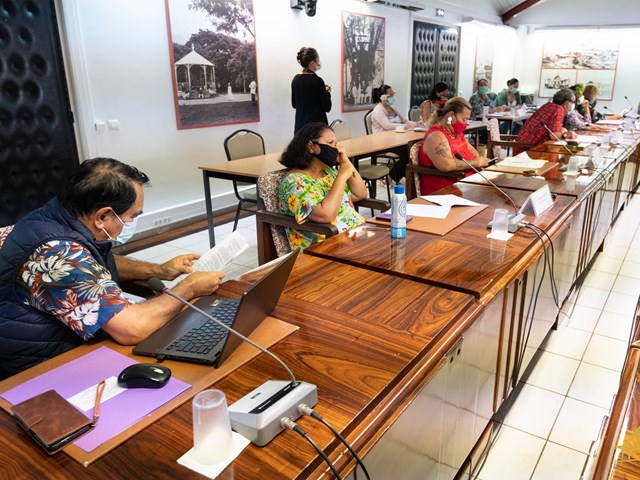 Le mercredi 18 août 2021, les membres de la commission de la santé, de la solidarité, du travail et de l’emploi étaient réunis sous la présidence de Mme Virginie BRUANT afin d’examiner le projet de loi du pays relatif à la vaccination obligatoire dans le cadre de la gestion de la crise sanitaire liée à la covid-19. Ce texte a été présenté au nom de la commission par Mmes Romilda TAHIATA et Monette HARUA, et a été défendu par M. Jacques RAYNAL, ministre de la santé en charge de la prévention, Mme Caroline GREPIN, conseillère technique auprès du ministre de la santé, Mme Sophie BONIFAIT, juriste à l’Agence de régulation de l’action sanitaire et sociale, M. Daniel PONIA, responsable de la vaccination à la plateforme covid-19 de la Direction de la santé, M. Philippe MACHENAUD, secrétaire général du gouvernement de la Polynésie française (SGG), M. Jason LEAU, chef du bureau des études juridiques du SGG, Mme Tamara DRAPE-POMMIER, directrice de cabinet du ministre du tourisme, M. Hironui JOHNSTON, conseiller technique en charge du tourisme auprès du ministre du tourisme et Mme Vanessa WAN DER HEYOTEN, chargée de mission en relation avec les institutions auprès du ministre du tourisme.