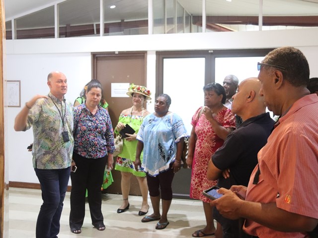 Après un passage dans le hall, les visiteurs ont découvert la salle Sonia AGNIERAY-THUNOT où se tiennent les réunions des commissions législatives. Ils se sont ensuite rendus dans l’hémicycle Vetea BAMBRIDGE où se tiennent les séances plénières de l’assemblée et dans les verdoyants jardins de Taraho’i.