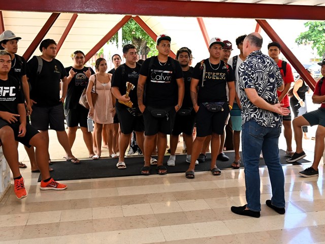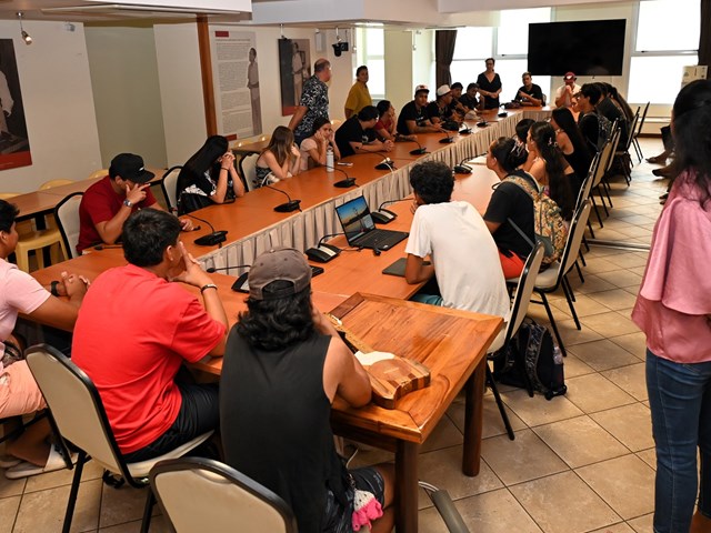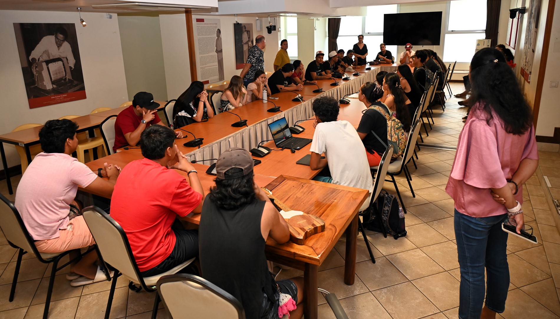 La découverte s’est poursuivie dans l’hémicycle Vetea BAMBRIDGE, cœur des débats parlementaires, où ils ont eu l’occasion de rencontrer le président de l’Assemblée de la Polynésie française, M. Antony GEROS. Assis dans les fauteuils des représentants, ils ont observé les décors symbolisant les cinq archipels de la Polynésie française, reflet de l’unité et de la diversité culturelle du pays.