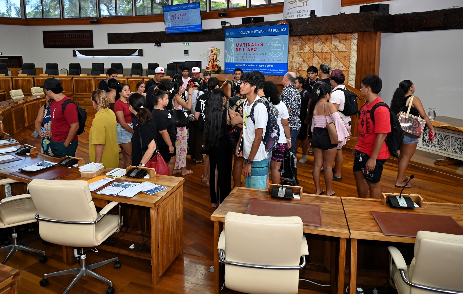 Ce mardi 7 octobre 2025, trente élèves de terminale S2 TMD (Sciences et Techniques du Théâtre, de la Musique et de la Danse) du lycée Paul Gauguin, accompagnés de leur encadrant, ont visité l’Assemblée de la Polynésie française.
