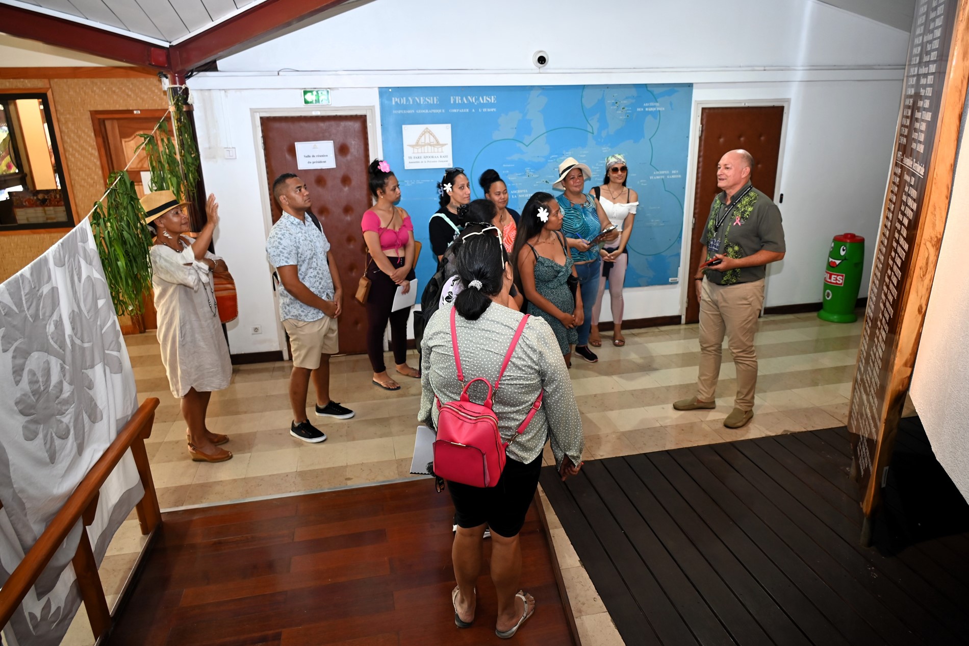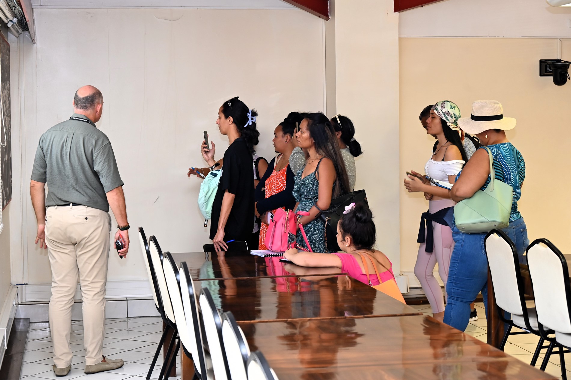 Ils ont ensuite découvert l’hémicycle Vetea Bambridge, lieu des débats et des votes des représentants de la Polynésie française. Leur passage a coïncidé avec la tenue de la deuxième séance de la session budgétaire, offrant un aperçu concret du travail parlementaire en cours.