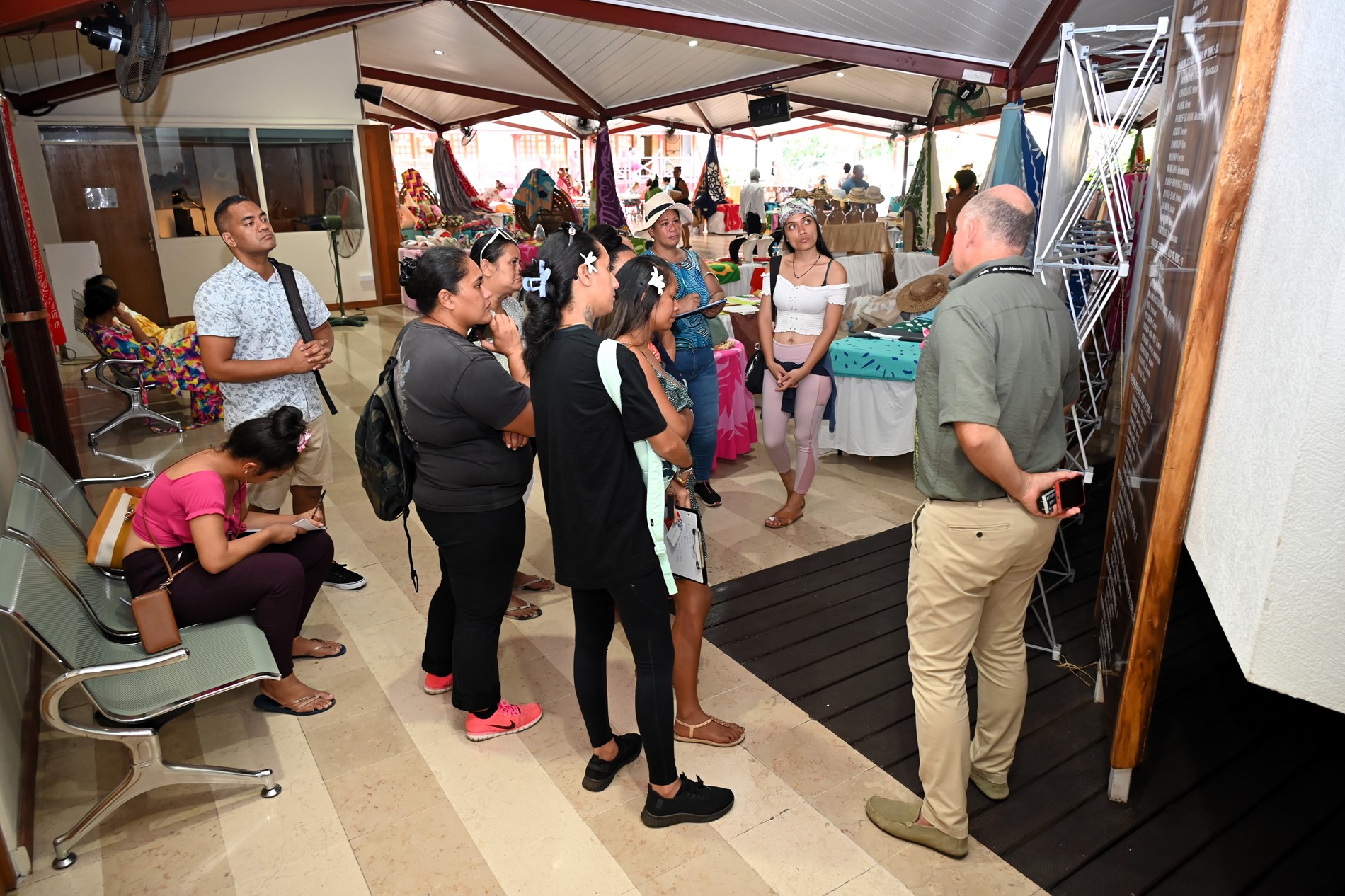 Le parcours a débuté dans le hall René Leboucher, espace dédié à la mémoire du premier secrétaire général de l’Assemblée. Les visiteurs y ont découvert les panneaux retraçant l’histoire des présidents successifs de l’institution ainsi que la composition actuelle de l’Assemblée. À cette occasion, ils ont également pu admirer l’exposition « 1er Salon du Tīfaifai – dans tous ses états », inaugurée en début de semaine.