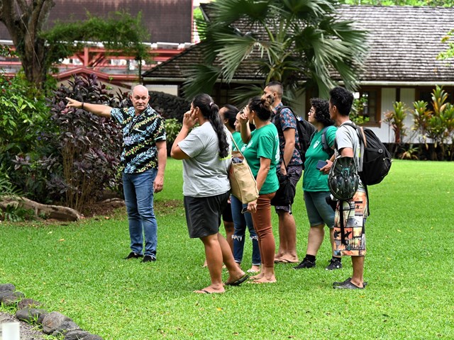 Pour clore leur visite, les stagiaires et leur formatrice ont profité d’une promenade dans le jardin de la Reine Pomare IV, découvrant un autre aspect du patrimoine de l’Assemblée.