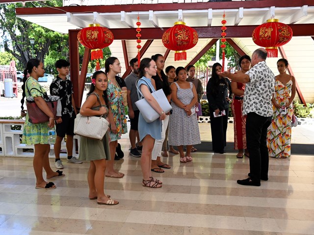 Enfin, la visite s’est conclue par une promenade dans le jardin de la Reine Pomare IV. Les élèves ont pu rencontrer et échanger avec M. Moerani FREBAULT, député à l'Assemblée nationale, qui a partagé son expérience et répondu à leurs questions, offrant un moment d’enrichissement dans un cadre chargé d’histoire.