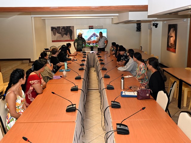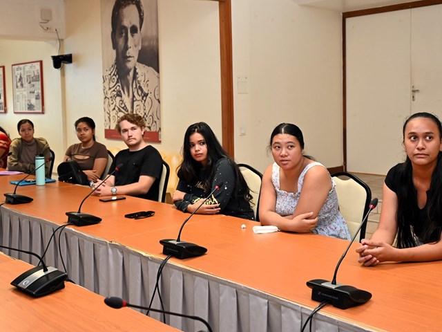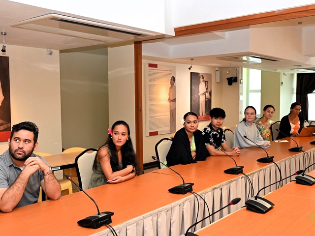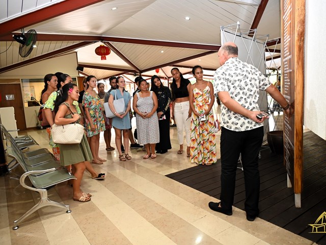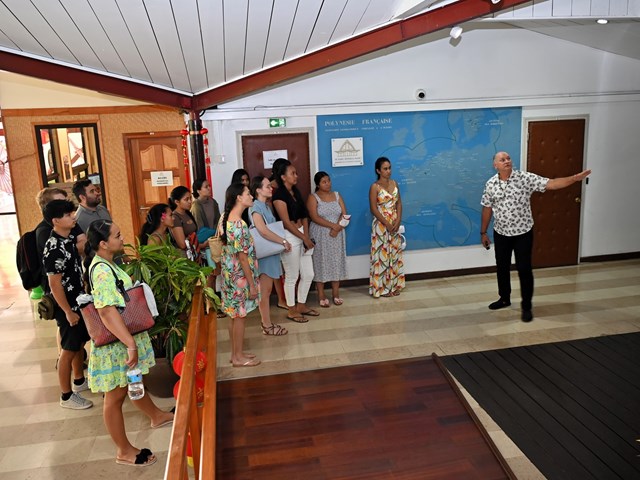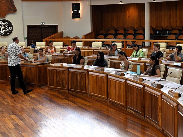Les élèves ont eu l’honneur d’être accueillis dans la salle John French TEARIKI par M. Heinui LE CAILL, président de la commission de l'éducation, de la jeunesse et des sports, ainsi que par M. Tevaipaea HOIORE, membre de cette commission. Ils ont assisté à une présentation détaillée des rôles et missions des représentants de l’Assemblée, ainsi que des nouvelles mesures votées par l’institution en faveur des étudiants, notamment en matière de bourses. Cette rencontre a également donné lieu à des discussions libre entre les élèves et les membres de la commission.