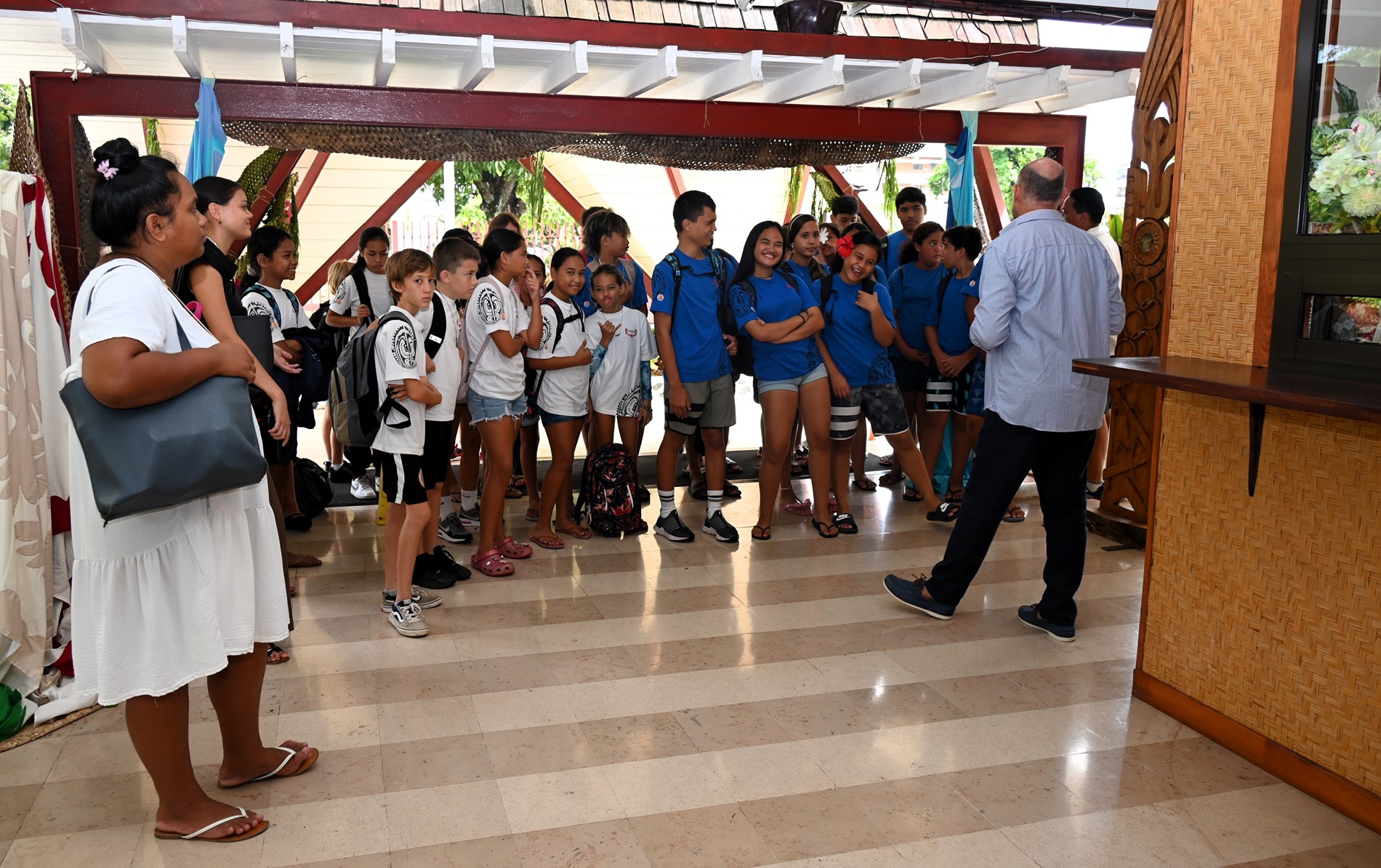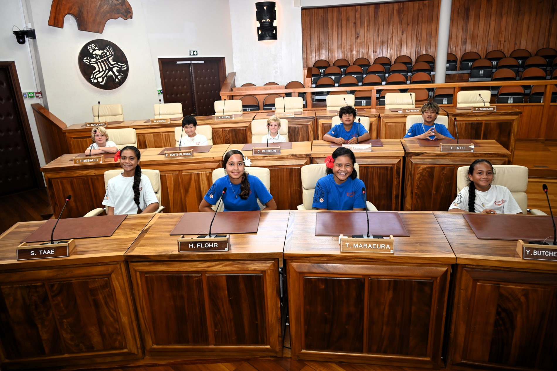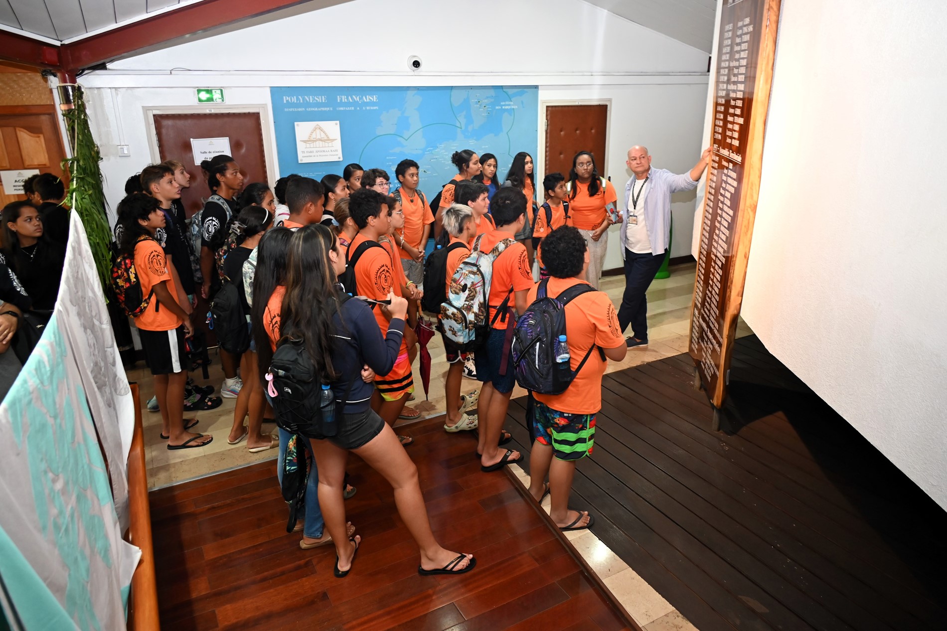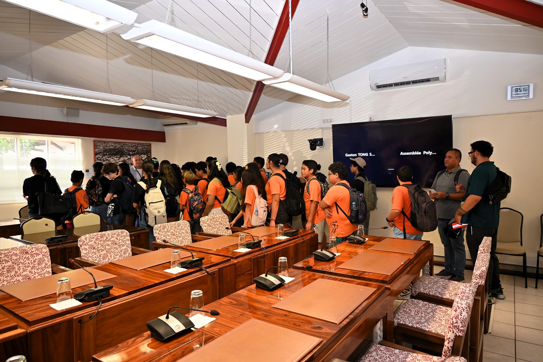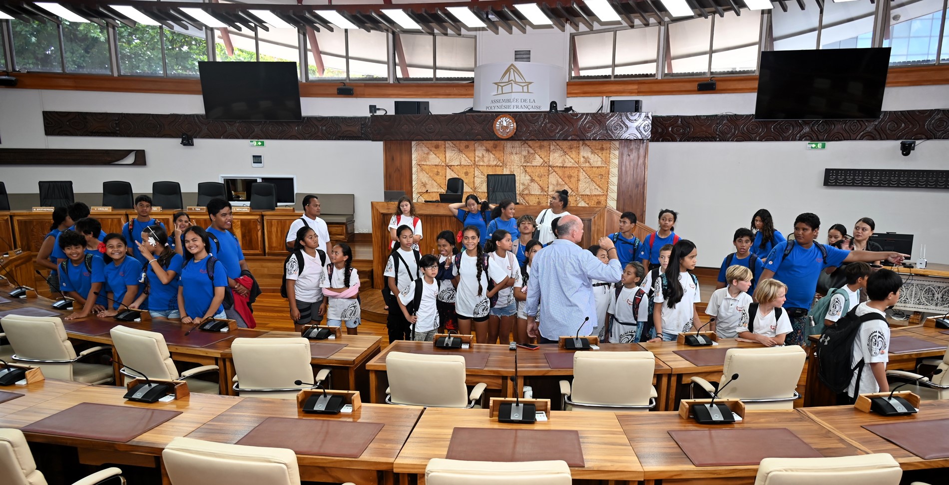 Ils ont ensuite découvert l’hémicycle Vetea Bambridge, lieu des débats et des votes des représentants. Ils y ont également observé les éléments décoratifs symbolisant les cinq archipels de la Polynésie française, témoignant de la richesse culturelle du territoire.