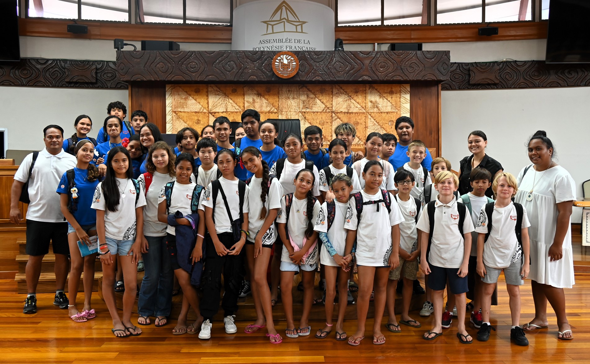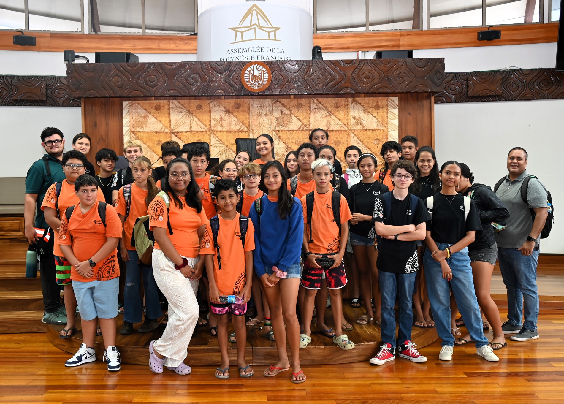 Ce mardi 30 septembre 2025, 80 élèves de 6ᵉ, 5ᵉ, 4ᵉ et 3ᵉ du collège de Punaauia, accompagnés de leurs encadrants, ont visité l’Assemblée de la Polynésie française dans le cadre d’une initiation aux institutions et à leur fonctionnement, ainsi qu’à l’élection des représentants des délégués.