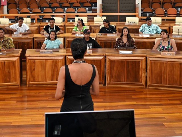 Les élèves ont été reçus par Mme Béatrice FLORES-LE GAYIC, présidente de la commission du logement, des affaires foncières et du développement durable, ainsi que par M. Heinui LECAILL, président de la commission de l’éducation, de la jeunesse et des sports.