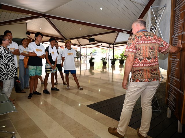 La visite s'est poursuivie dans l’hémicycle Vetea BAMBRIDGE, cœur des travaux parlementaires, avant de se conclure par une exploration des jardins de la Reine Pomare IV.