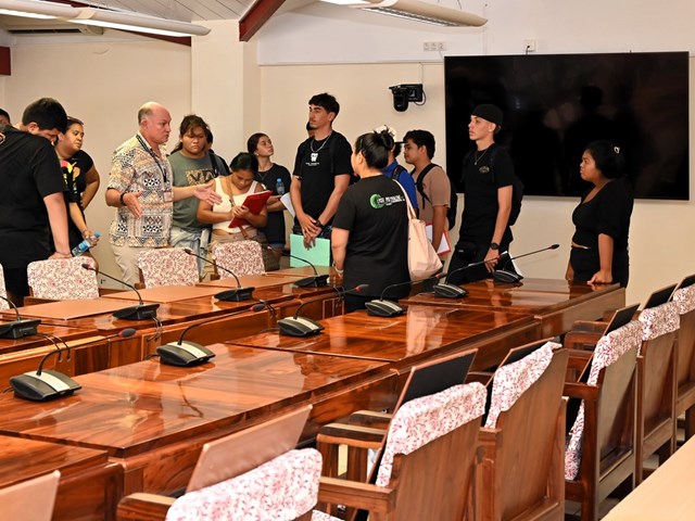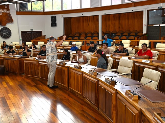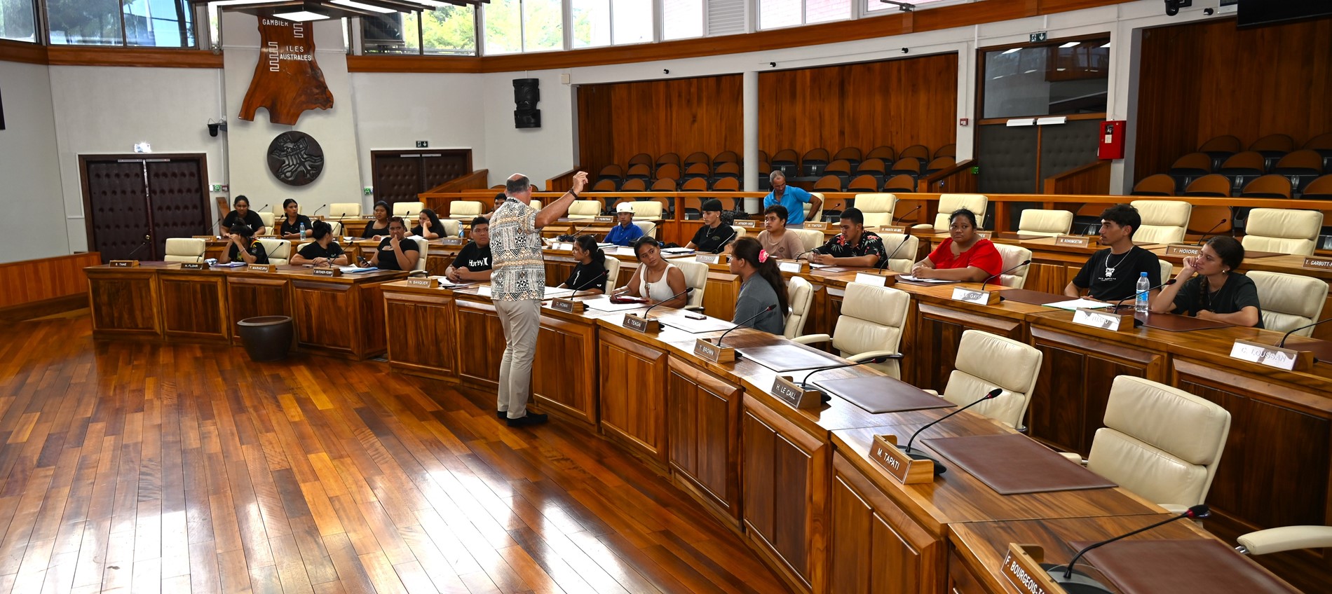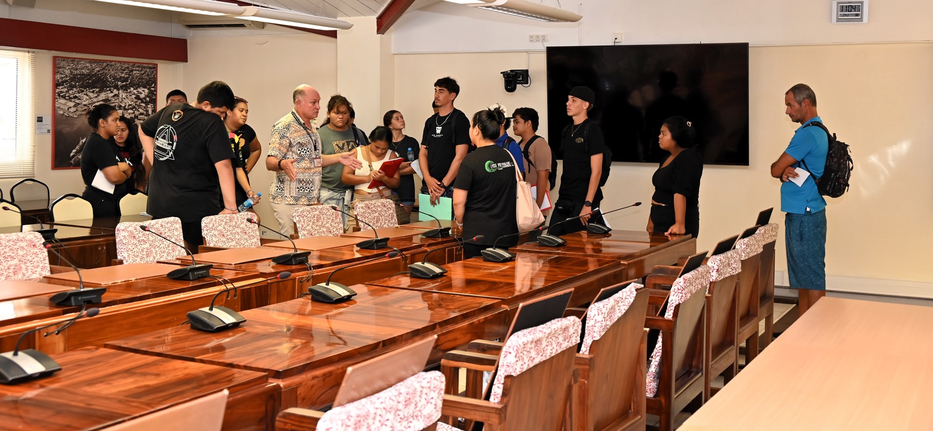 Les lycéens ont également exploré la salle Sonia AGNIERAY-THUNOT dédiée à l’examen des textes avant leur adoption par les élus lors des séances dans la salle Vetea BAMBRIDGE.