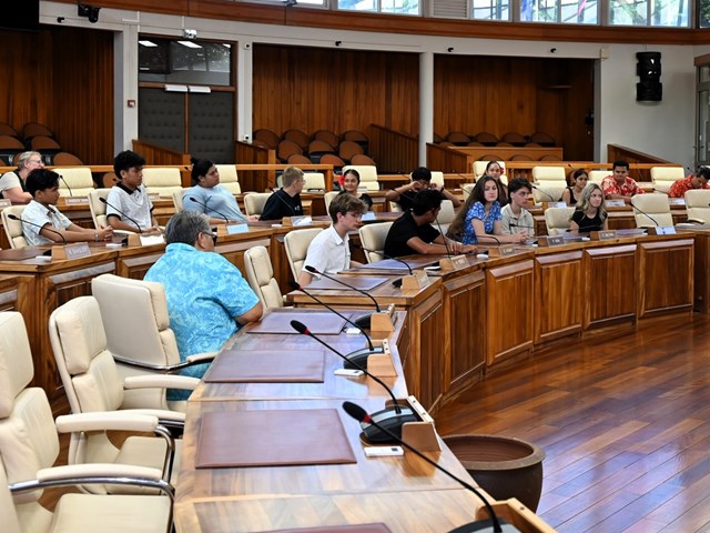 Pour conclure leur découverte de l’institution et dans le cadre de leur scolarité, les élèves ont échangé dans la salle John French TEARIKI avec les membres de l’Assemblée présents au sujet de la présentation d’une proposition de loi visant à limiter l’usage du plastique.