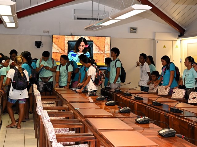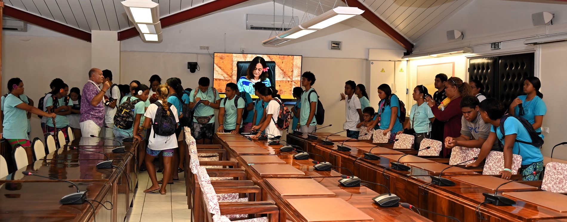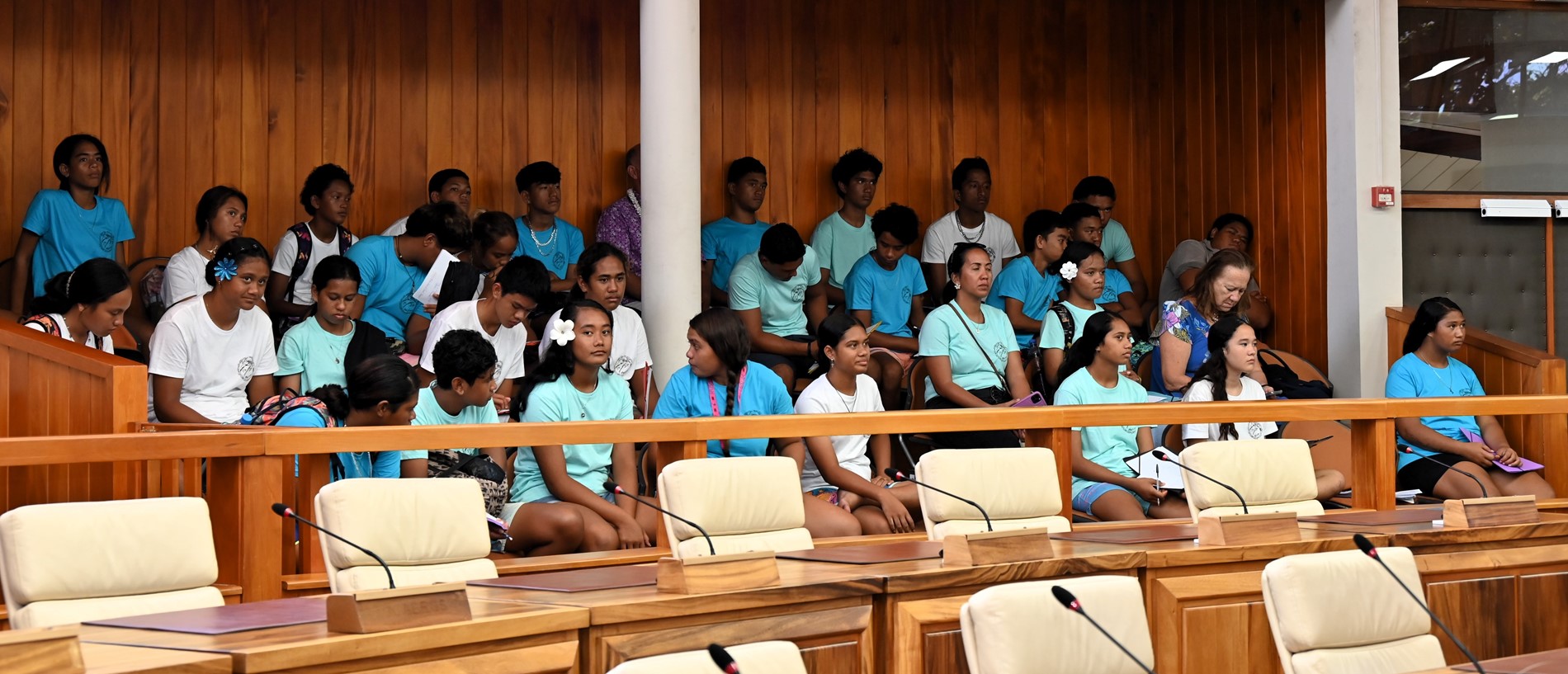 Ce jeudi 19 février 2026, 35 élèves de 3ᵉ au collège de Makemo, accompagnés de leurs encadrants, ont visité l’Assemblée de la Polynésie française.