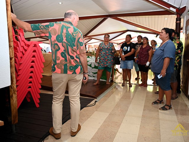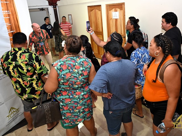 Ensuite, le groupe s'est rendu dans la salle des commissions Sonia AGNIERAY-THUNOT, qui porte le nom de l'ancienne secrétaire générale adjointe, en hommage à son engagement, et ils ont pu observer les panneaux relatant l’histoire de l’institution et de la place Tarahoì.