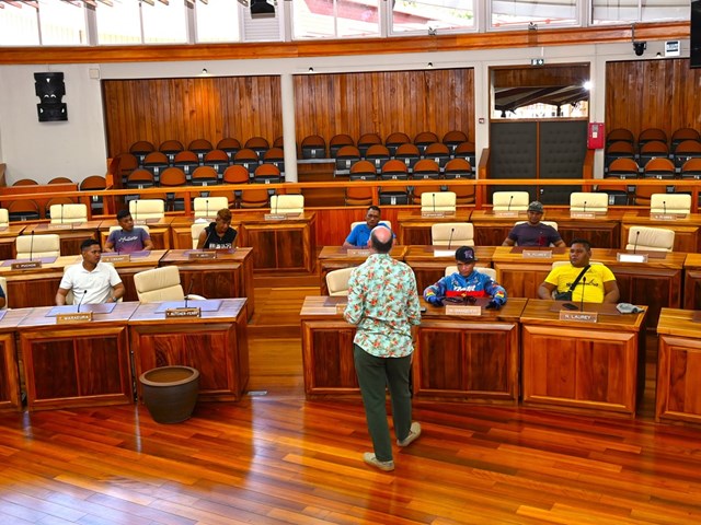 L'assemblée de la Polynésie française a accueilli le vendredi 6 juillet un groupe de douze stagiaires en formation aux métiers de la restauration, issus du centre Te Vaiete api de Père Christophe. Cette visite s'inscrit dans le cadre de leur programme de réinsertion professionnelle, offrant une occasion unique aux participants de découvrir le fonctionnement de l’institution et d'en apprendre davantage sur le rôle et les responsabilités des élus.