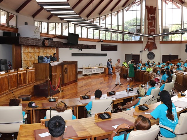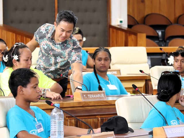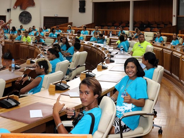 Les élèves se sont ensuite dirigés vers la salle des commissions John French TEARIKI et la salle des séances Vetea BAMBRIDGE au sein desquels le rôle et le fonctionnement de l’institution ont été présentés.
