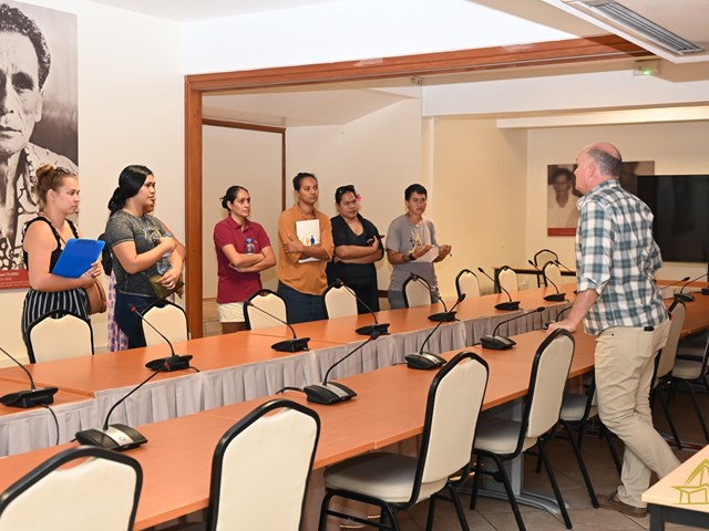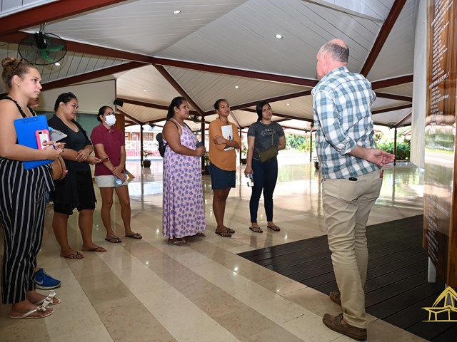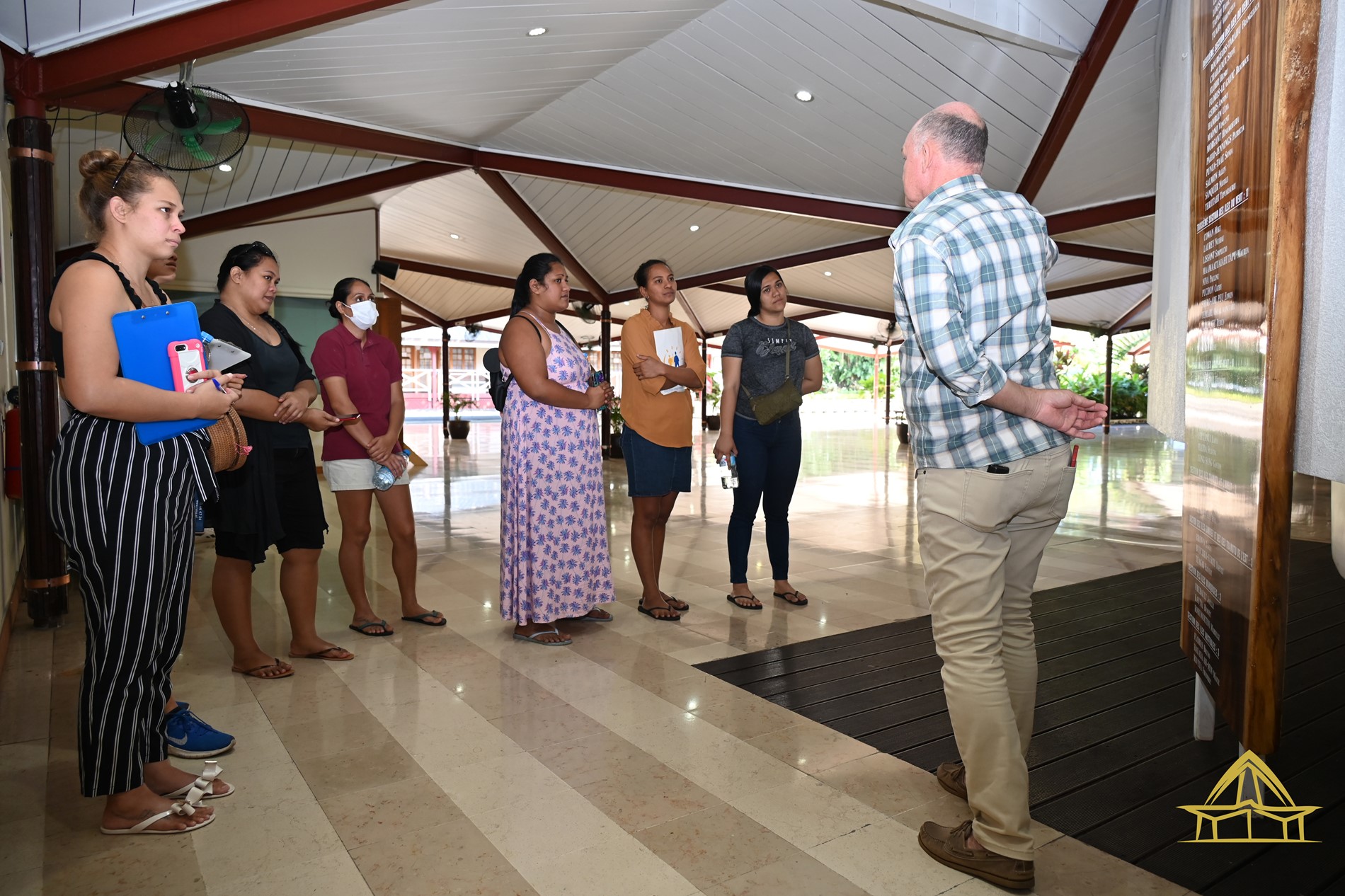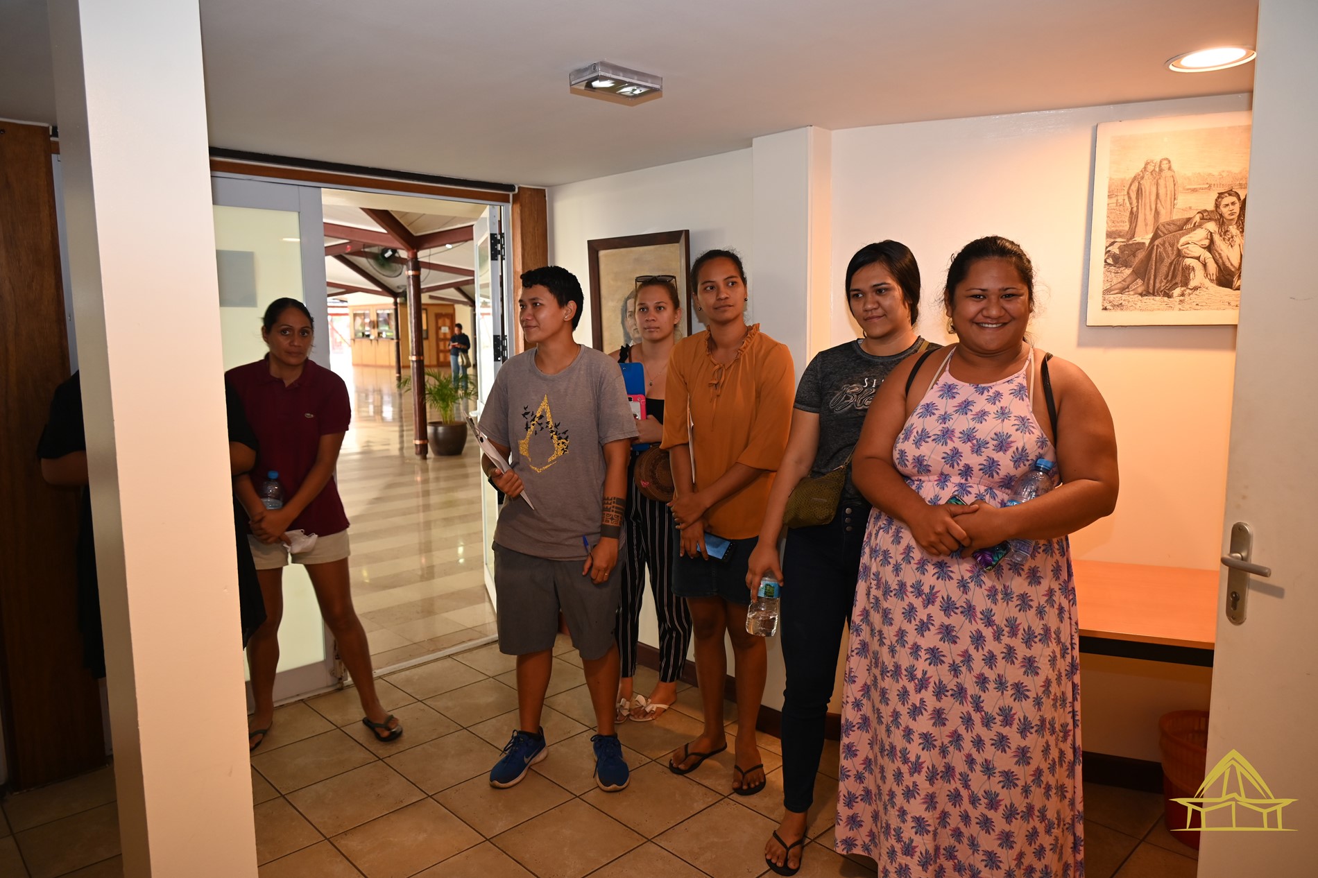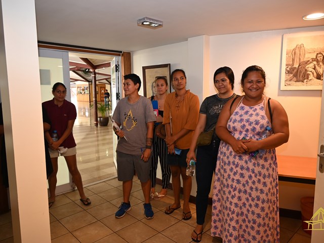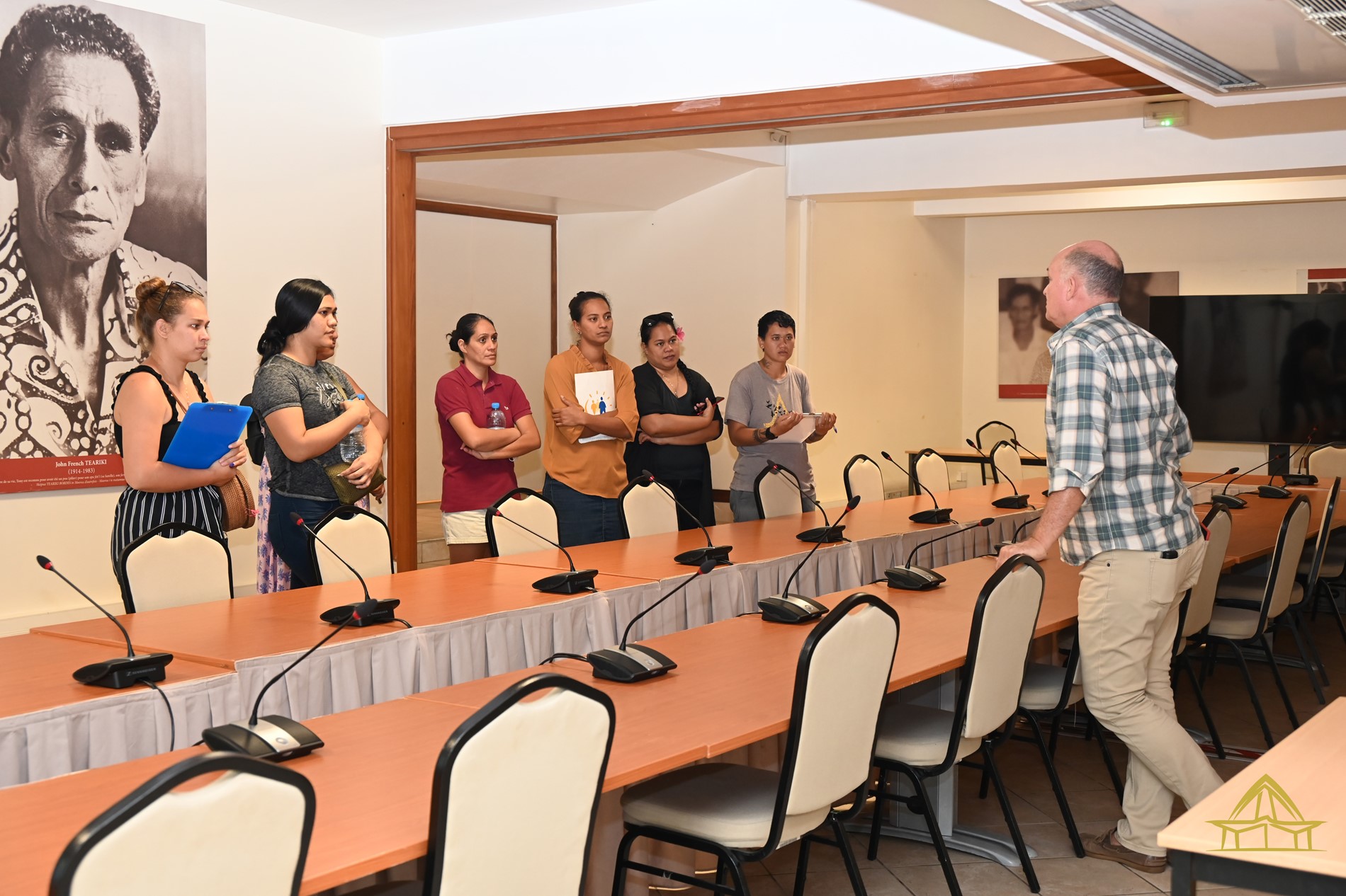 La visite a débuté avec une présentation des panneaux d'information dans le hall René LEBOUCHER, donnant aux stagiaires un aperçu des missions et du rôle de la 3ème institution polynésienne. Nommé en l'honneur du premier secrétaire général de l'institution, ce hall est aussi un lieu de vie, d’animation et de découverte, accueillant diverses expositions artisanales et manifestations culturelles.